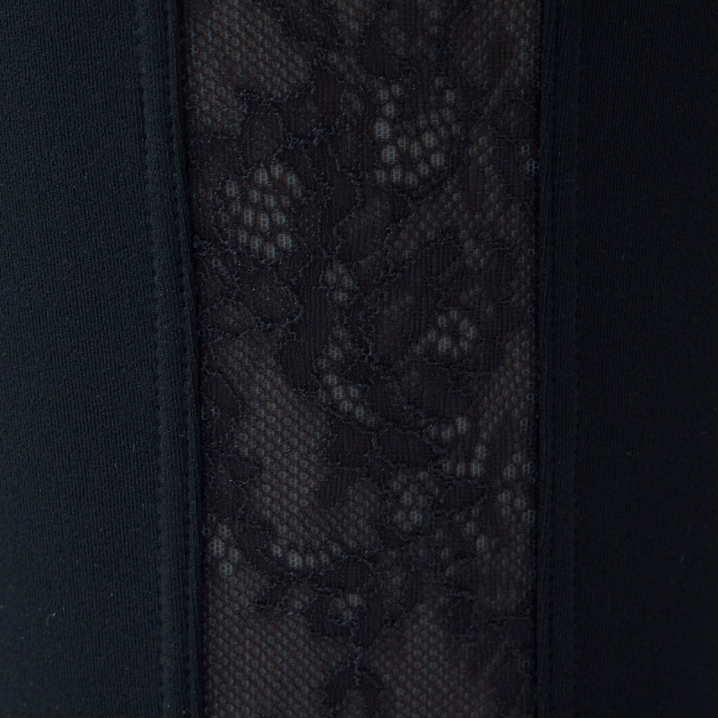 切り替えラインをアレンジし、サイドに長めに入ったレースは足をきれいに見せ脚長効果もあり、後ろのヨークはヒップアップを丸く高く見せる効果がある。