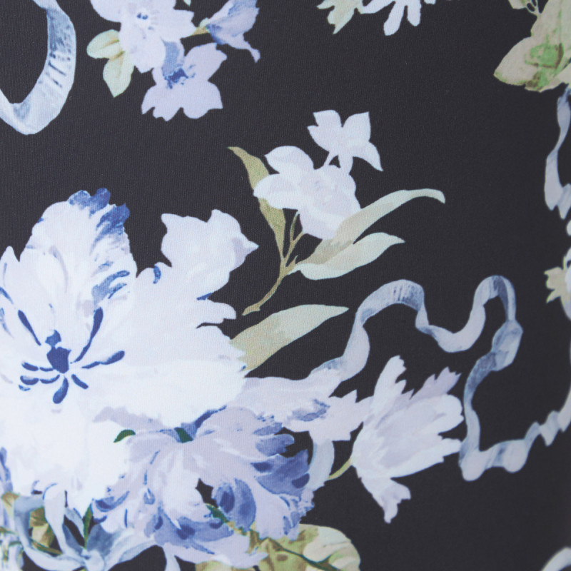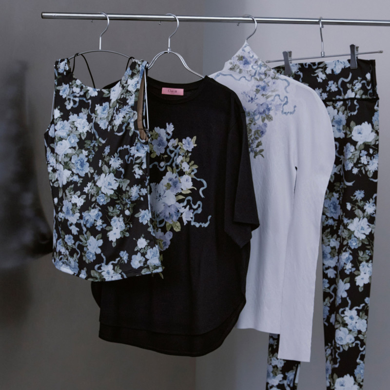 ホリデーシーズンのわくわくする気持ちをフラワーブーケとリボンで表現したチャコットオリジナルプリント。