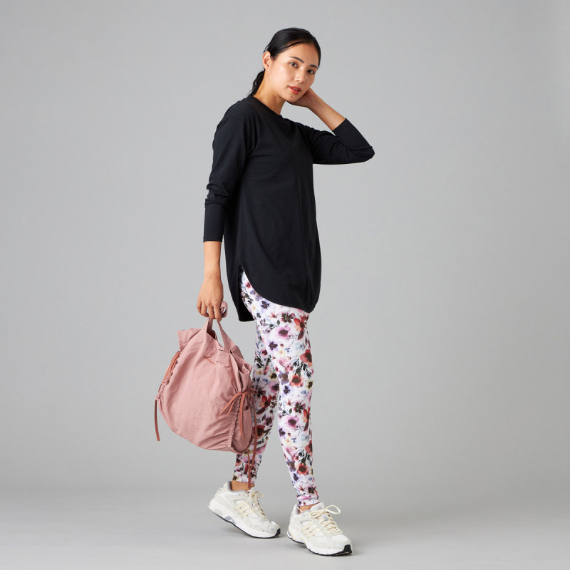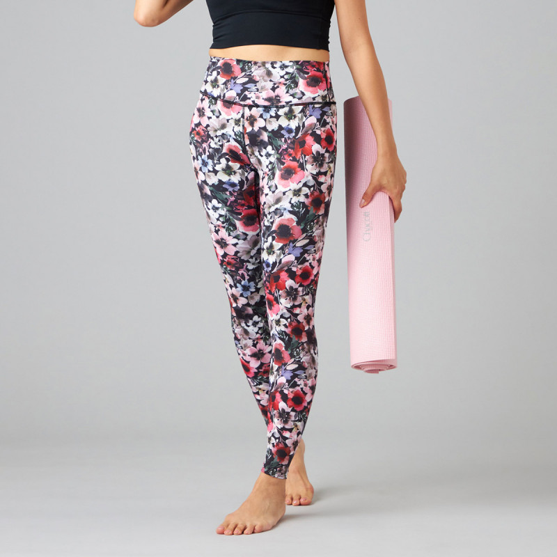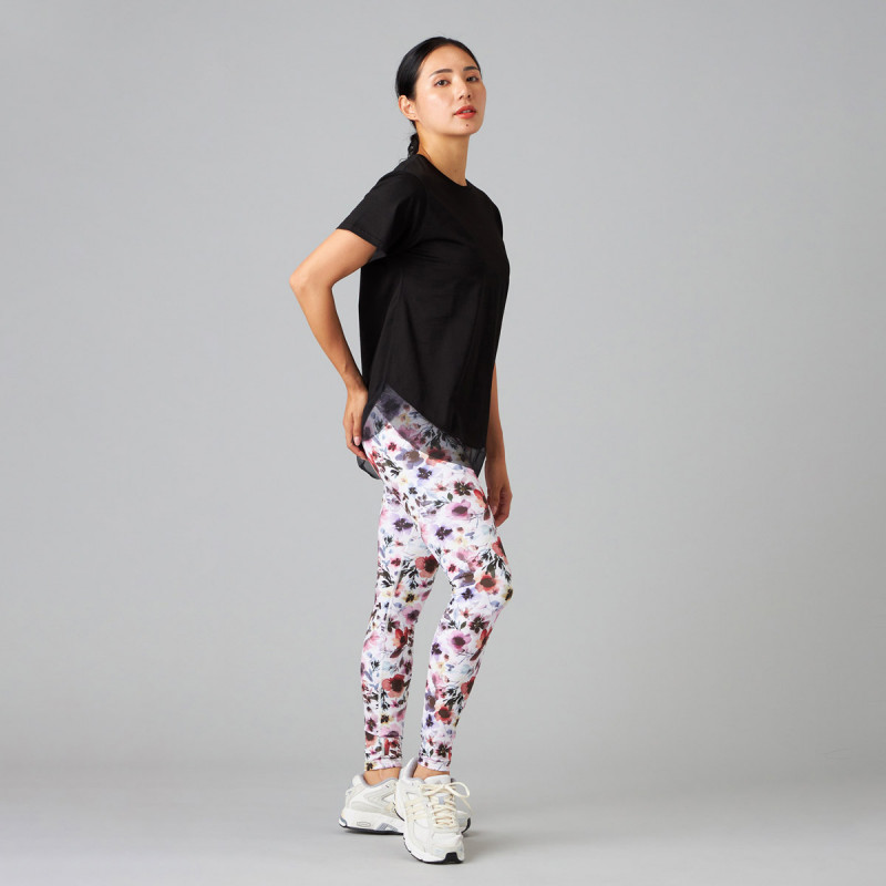 水彩タッチで描かれた花柄が、まるで呼吸するように身体になじむヨガウェア。