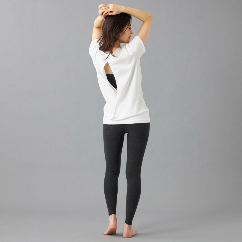 なめらかで伸びの良いストレッチ素材を使用し動きやすく、トレーニングやフィットネスに最適。