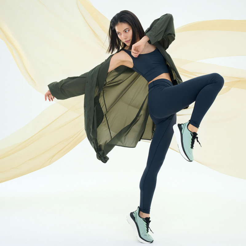 ハイストレッチ素材だからこそ実現できたタイトシルエットが脚をすっきり美しく見せる。