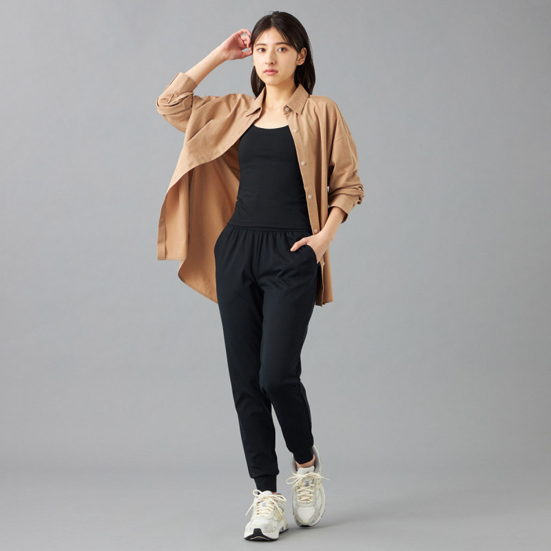 レギンス感覚ではける美脚シルエットのタイトジョガーパンツ