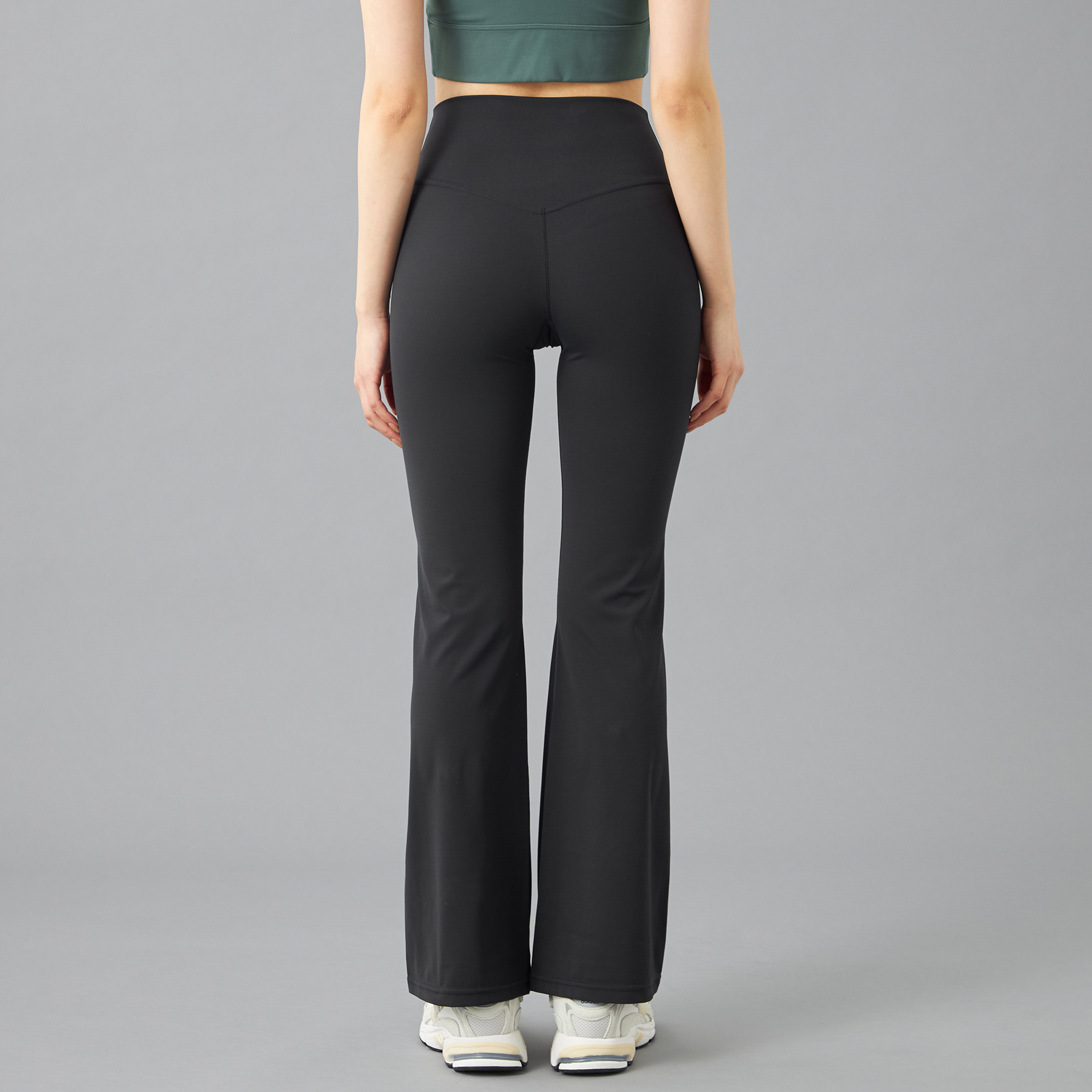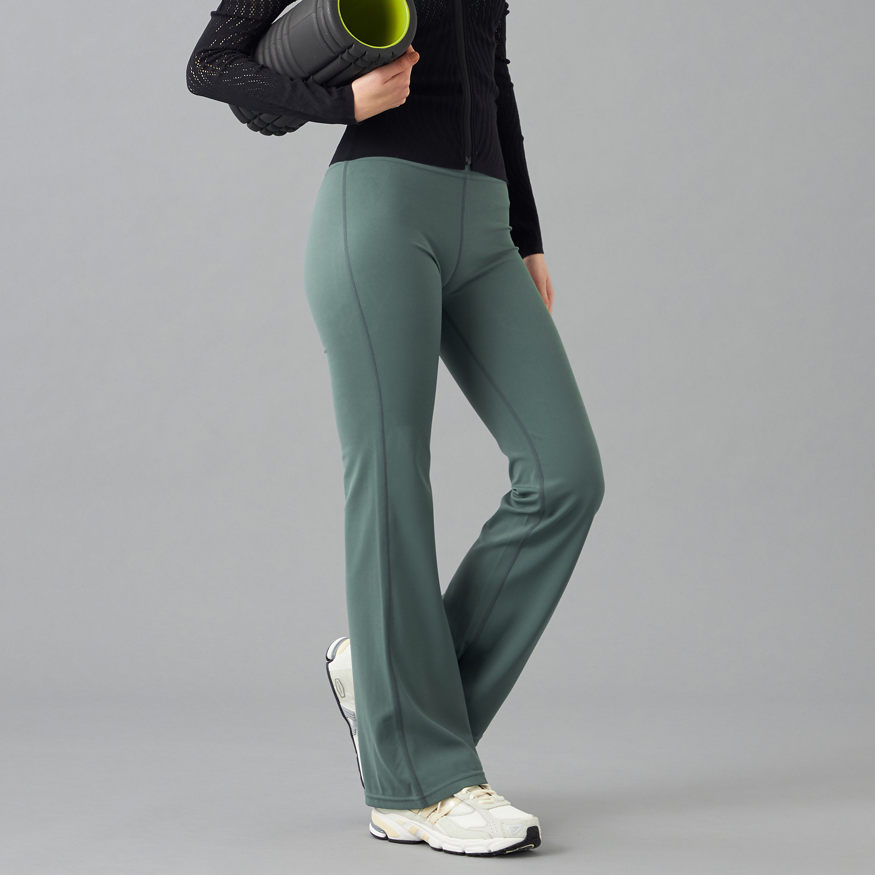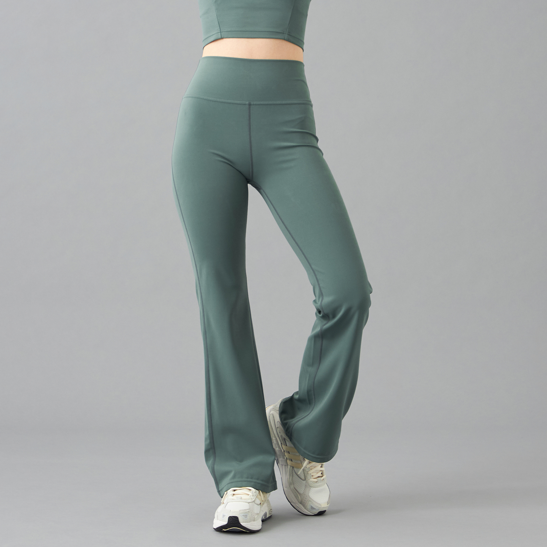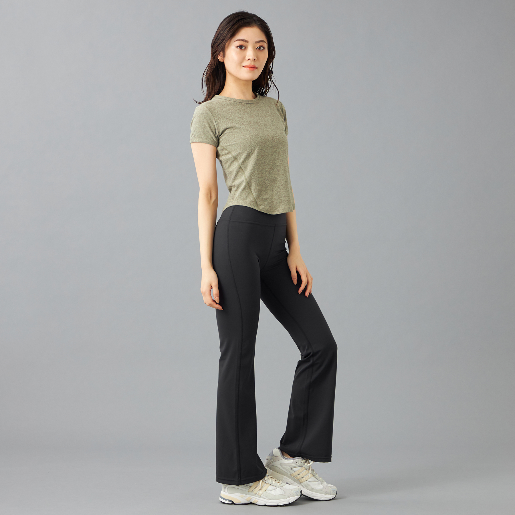 膝下から裾に向かって適度に広げたフレアが、足の形をカバーし真っ直ぐのシルエットに見せてくれる美脚パンツ。