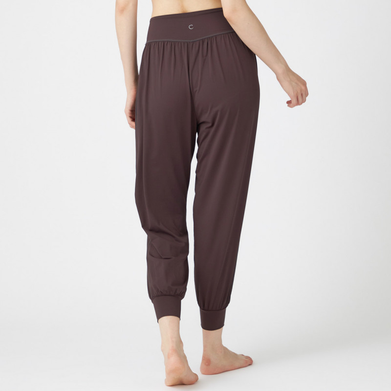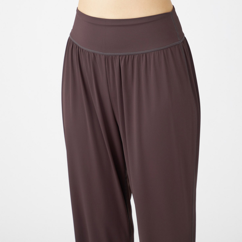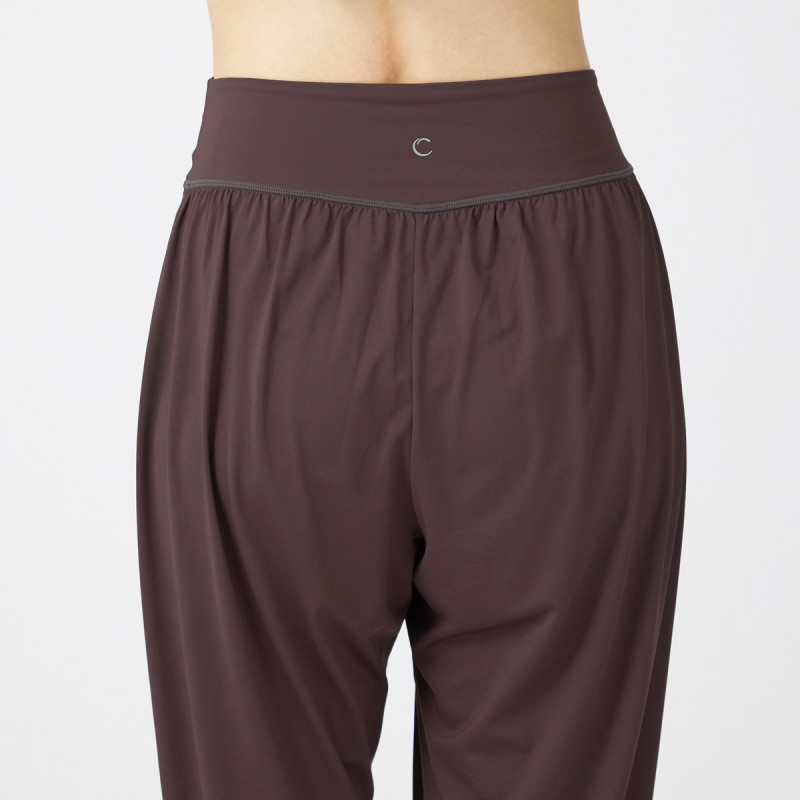ウエストに入れたギャザーが、腰まわりから脚全体をしっかりカバー。