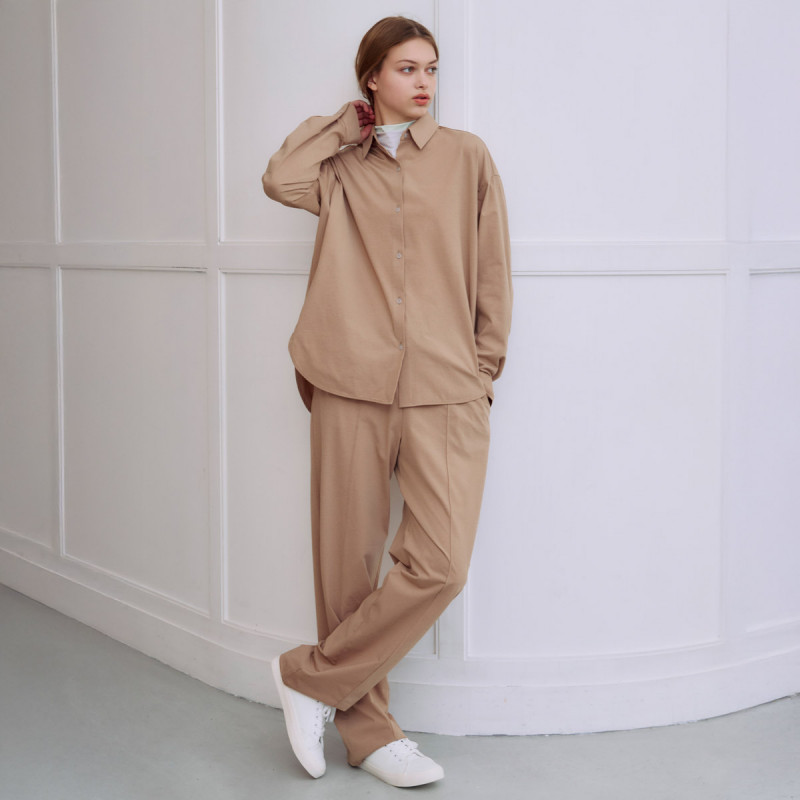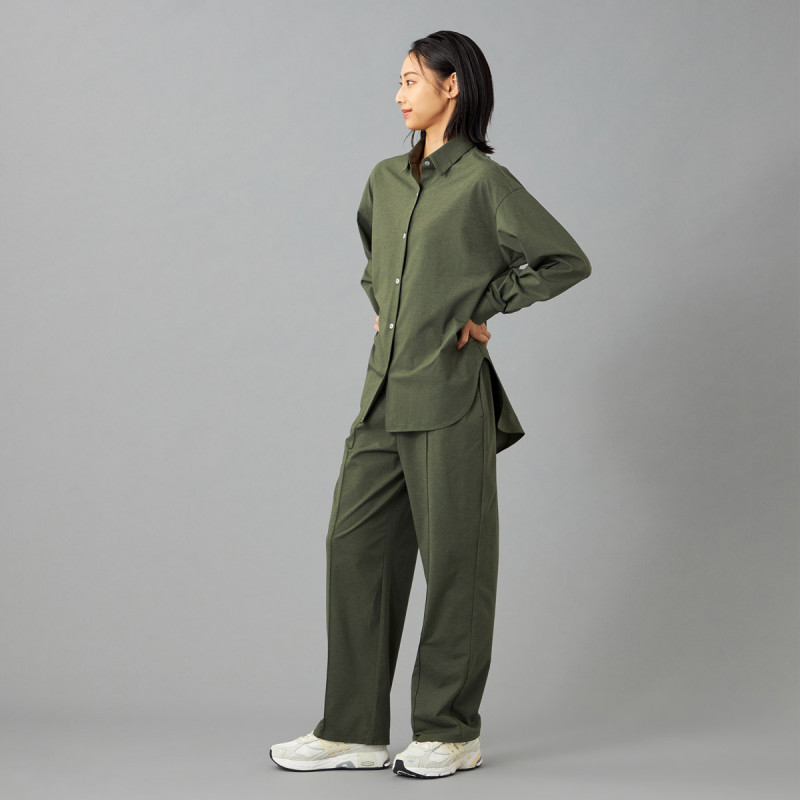 洗濯機から出した瞬間から着れそうなほどの速乾性とシワになりにくい素材でイージーケアなのもうれしいポイント。