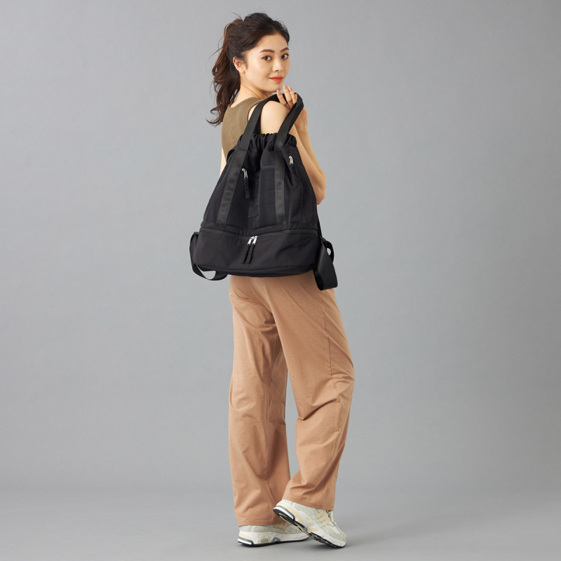 生地は吸水速乾、UV カット機能を備えており、ポケット布にはメッシュ素材を使用して汗をかくシーンや暑い季節までしっかりと対応し、オールシーズン快適にレッスンで使えるアイテム。