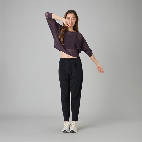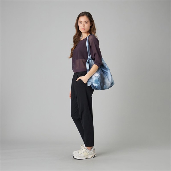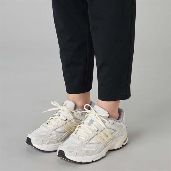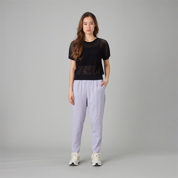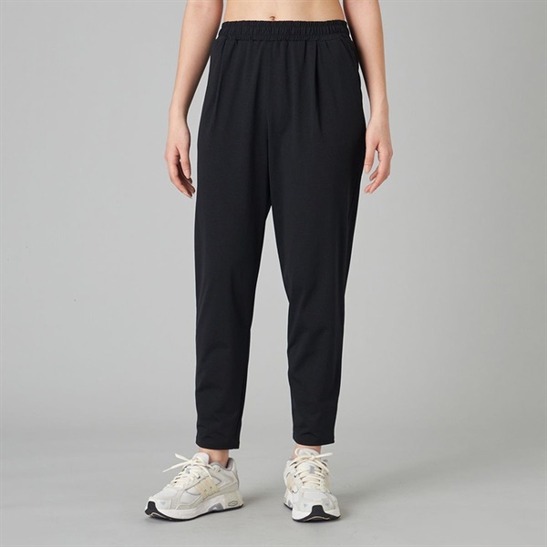 テーパードのシルエットにウエストゴムで着脱が簡単なアイテム。