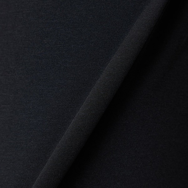 糸の特性から生地のキックバックが強いので、伸縮性の良さと型崩れのしにくさをもった生地です。Thick and Thin(シック:太い部分とシン:細い部分のある特殊な形状をした糸)によりナチュラルな見え方に仕上がっています。吸水速乾性に大変優れており、紫外線も97%以上カットする機能を持っています。