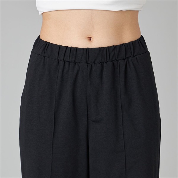 センタープレス&ステッチと適度なハリが脚をまっすぐみせる美脚シルエット。