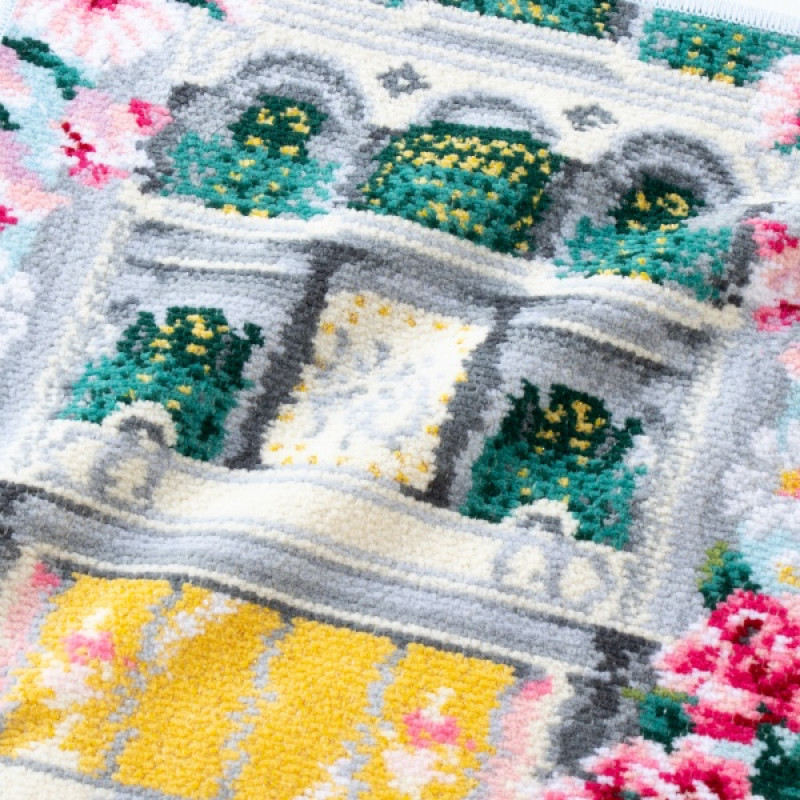 シュニール織は何十もの複雑な工程と多くの手作業を経て織られる特殊な織物です。