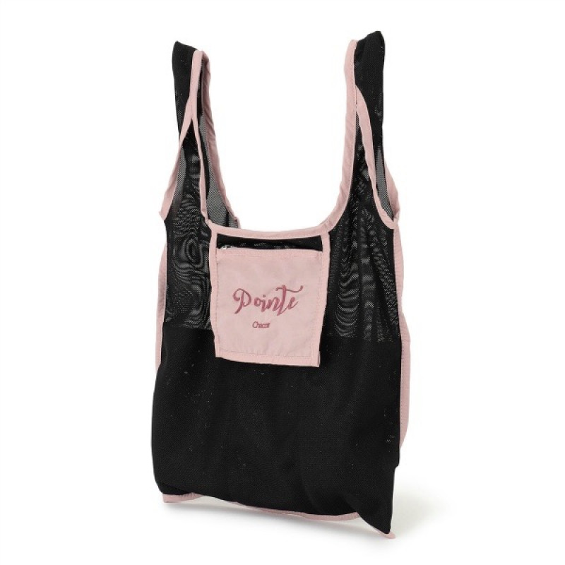 可愛いポワントの刺しゅう入りのポケット付き。トゥパットやケア用品等の小物を収納に便利。