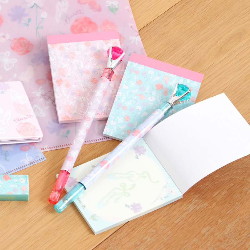 フラワー柄にポワントとバタフライが春らしいプリントのメモセット