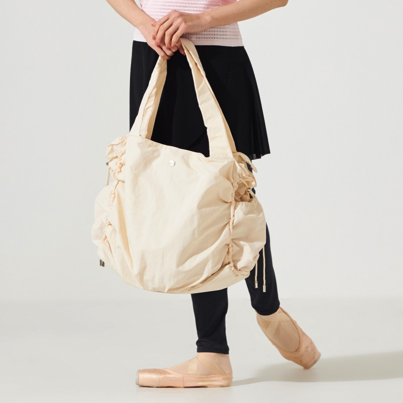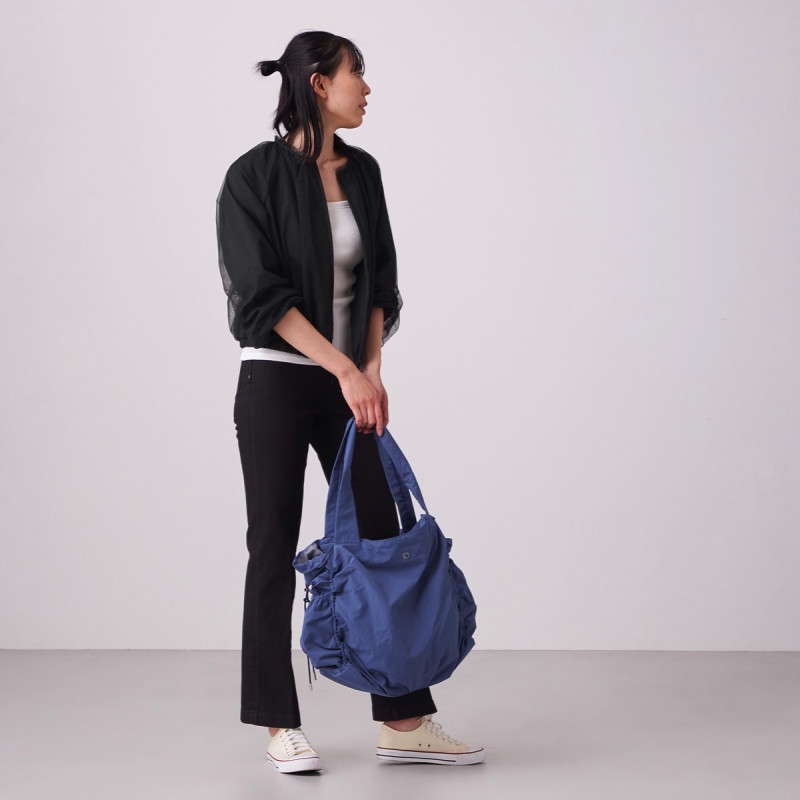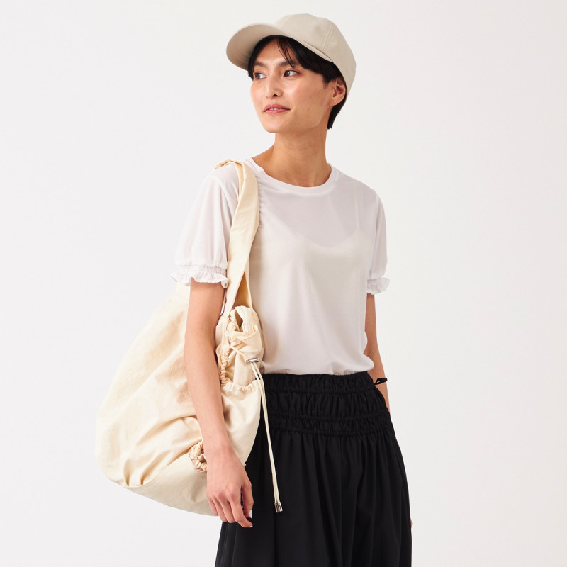 ギャザーで丸みのある女性らしいフォルムのトートバッグ