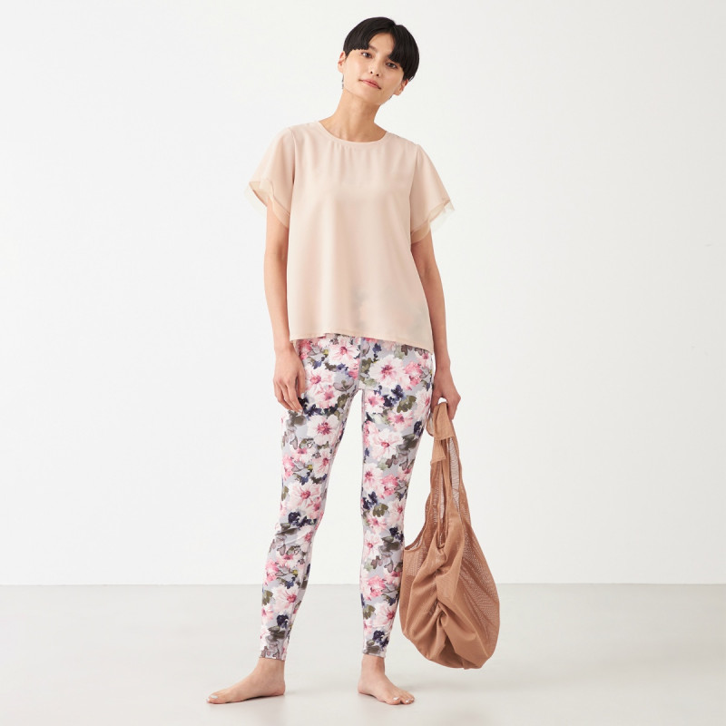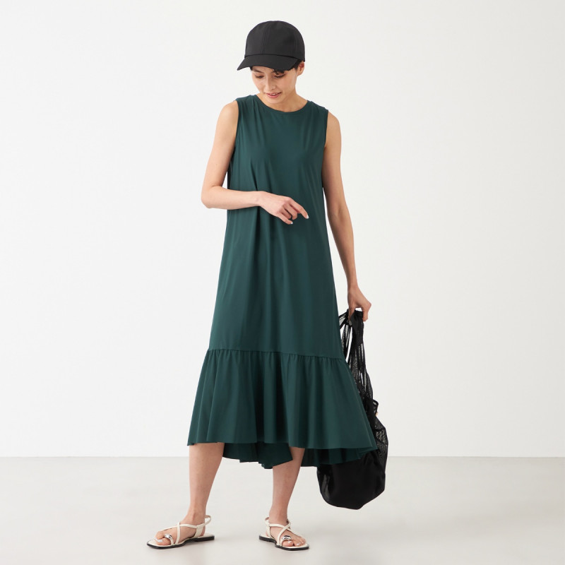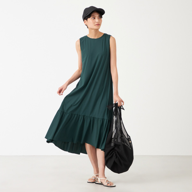 ショルダーの結びリボンや、サイドのギャザー使いがバランスらしいコーディネートのポイントになるデザイン。