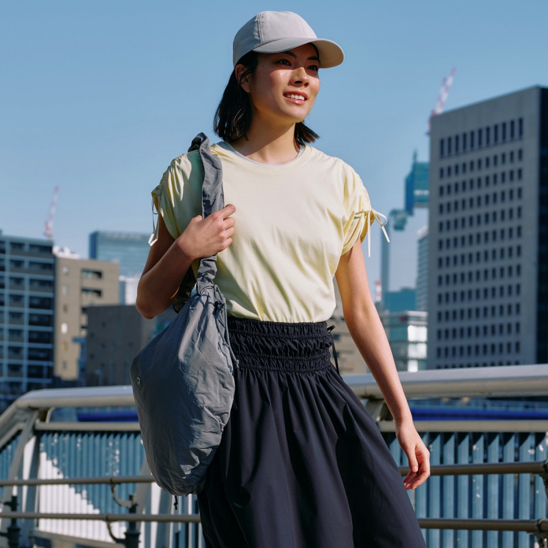 ショルダーと本体の紐で自由にデザインを変えられるショルダーバッグ