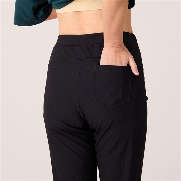 後ろヒップ部分は、ヒップの位置を高く立体的に見せる効果のあるヨーク切り替え。