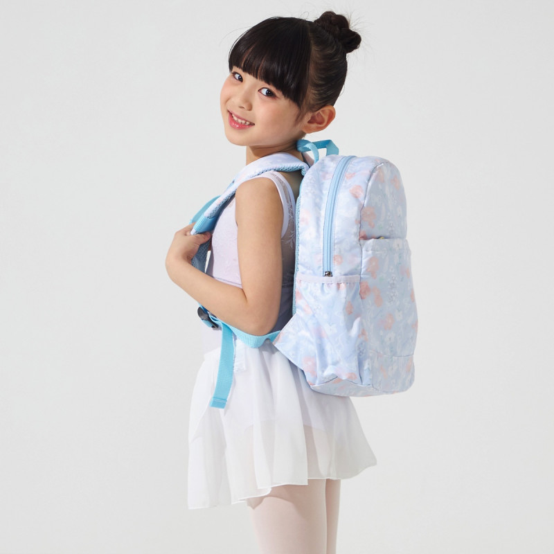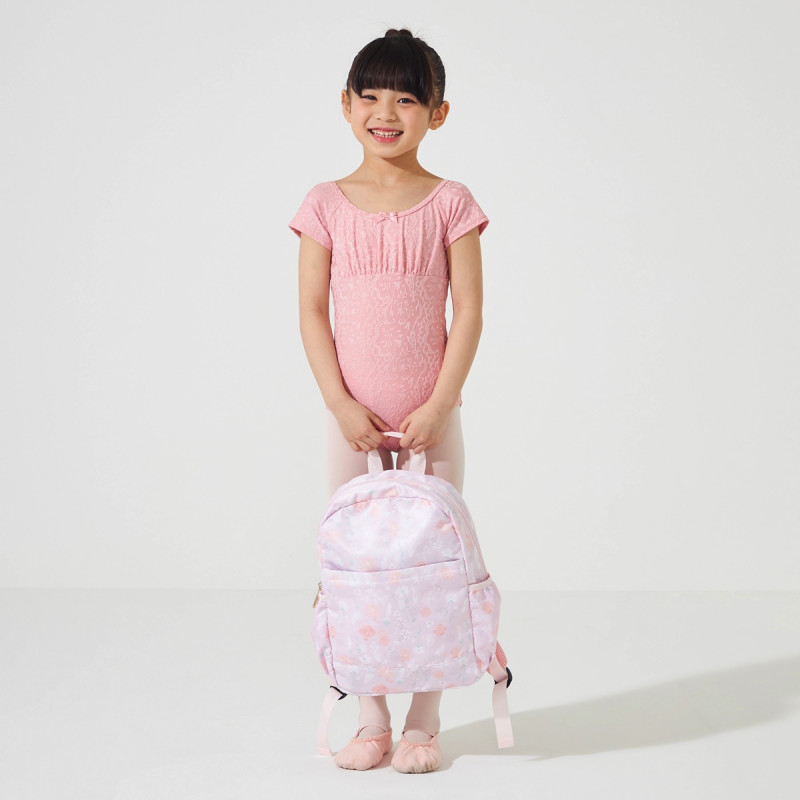 フラワー柄にポワントとバタフライが春らしいプリントのリュックサック