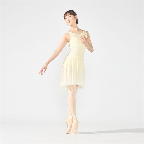スラッシュネックラインがエレガントな印象のノースリーブレオタード
