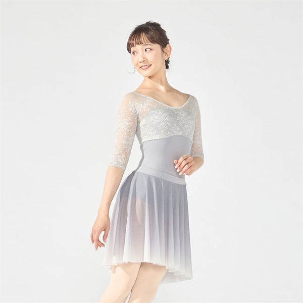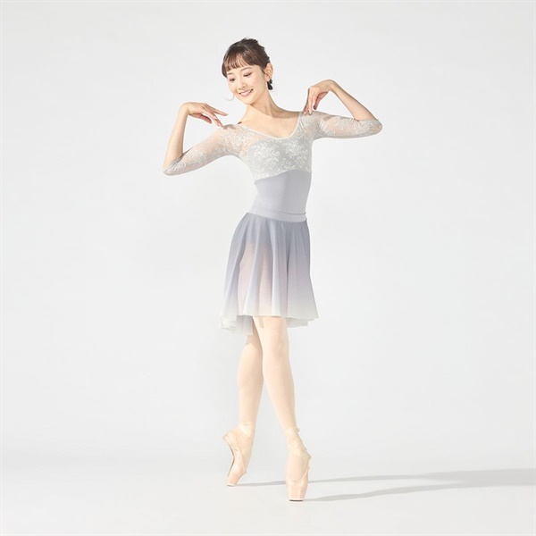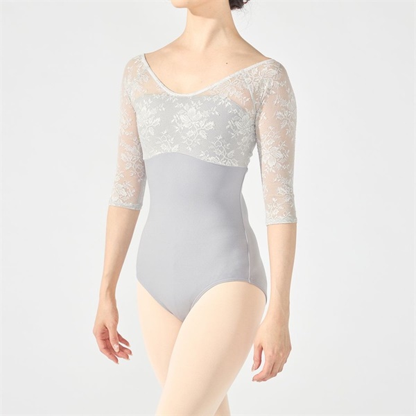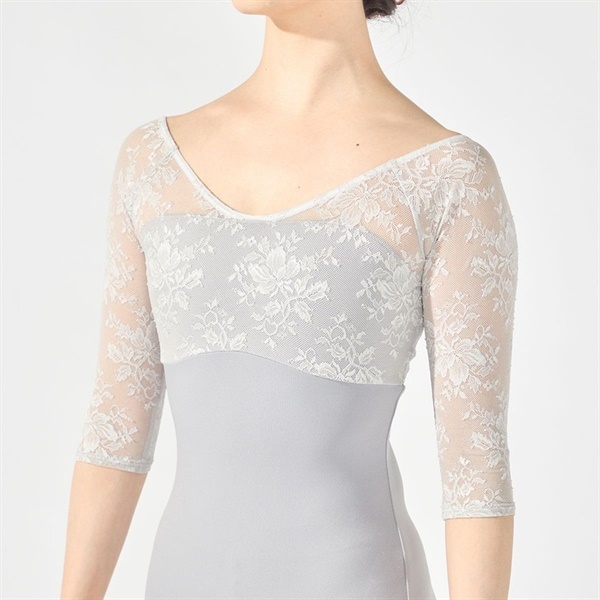 緩やかなVネックラインがデコルテを美しく見せる6分袖レオタード