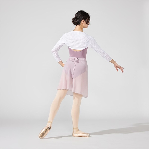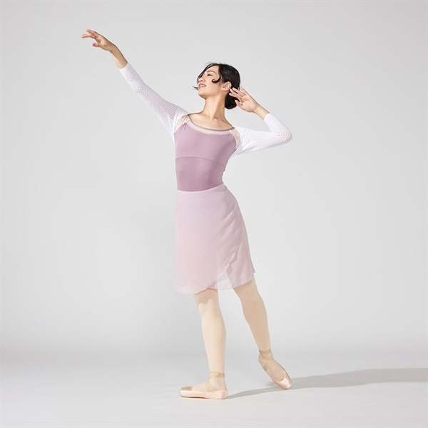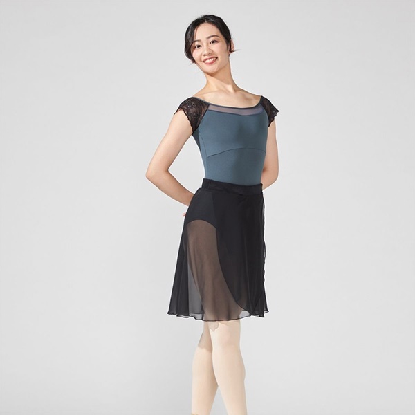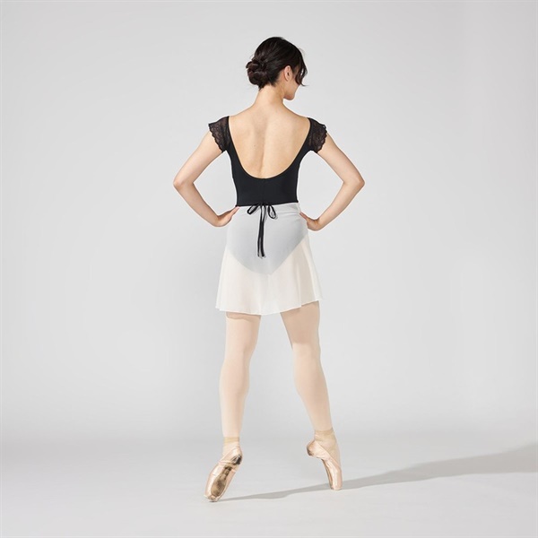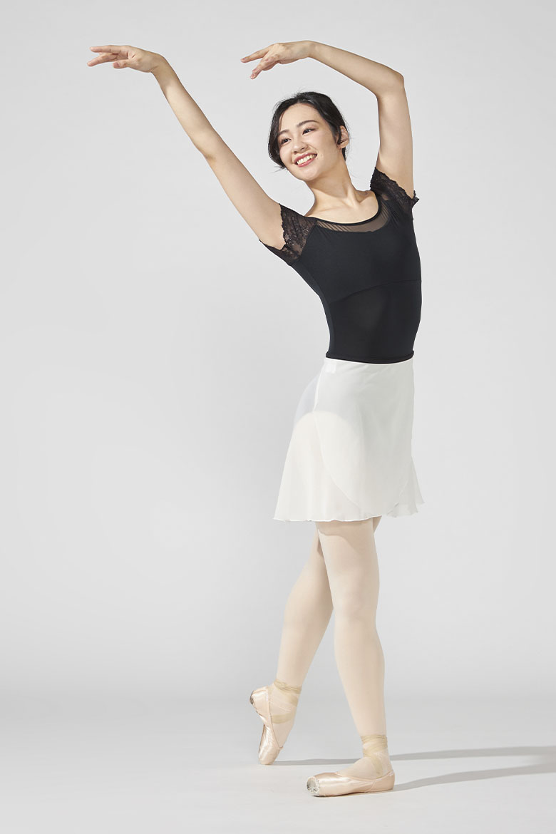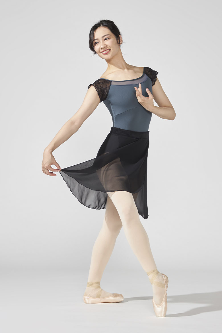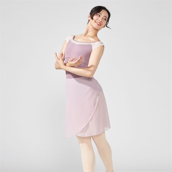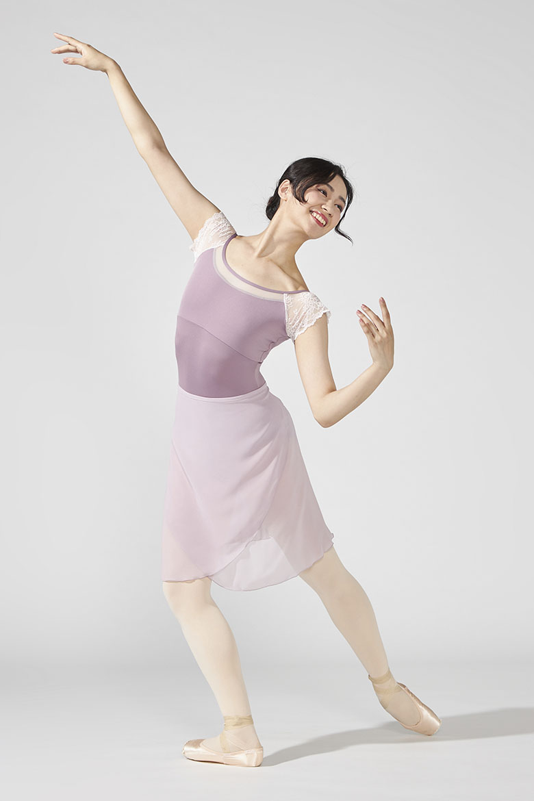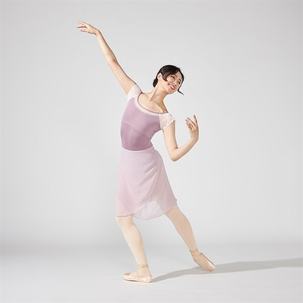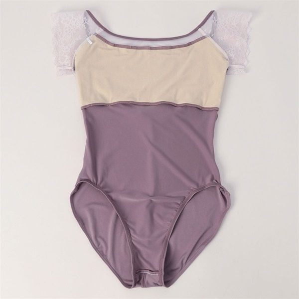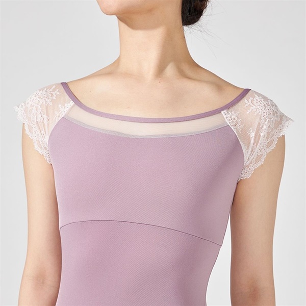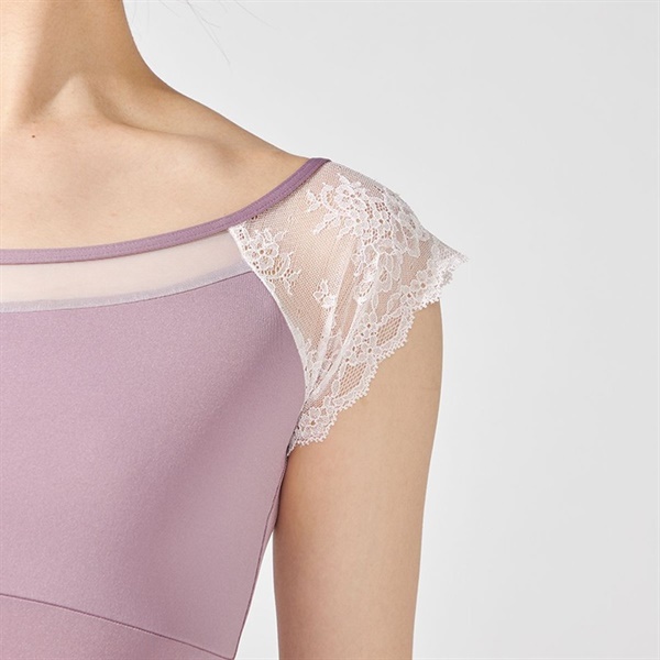 ストレッチレースを使用したコンパクトな袖が腕まわりをすっきりと見せるフレンチスリーブレオタード