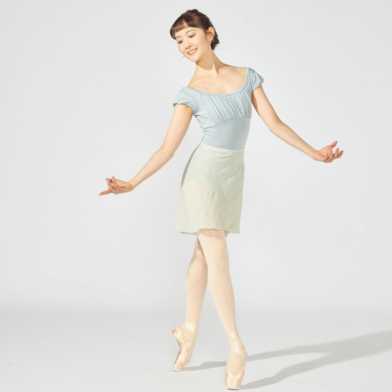 ボリュームを持たせつつもコンパクトに仕上げた袖が、甘くなりすぎず幅広い方に似合うパフスリーブレオタード