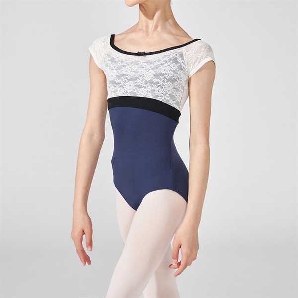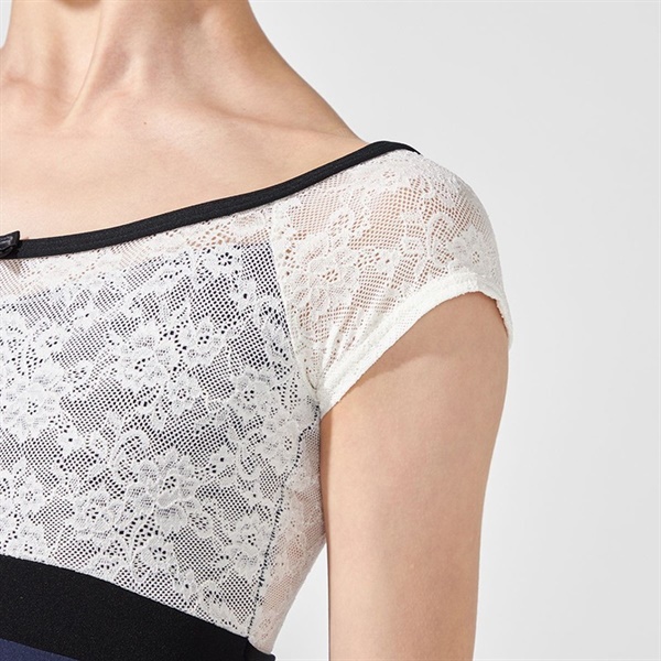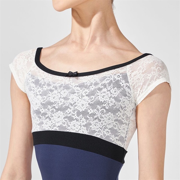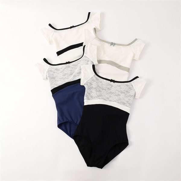 上身頃にレースを贅沢に使用したフレンチスリーブレオタード。