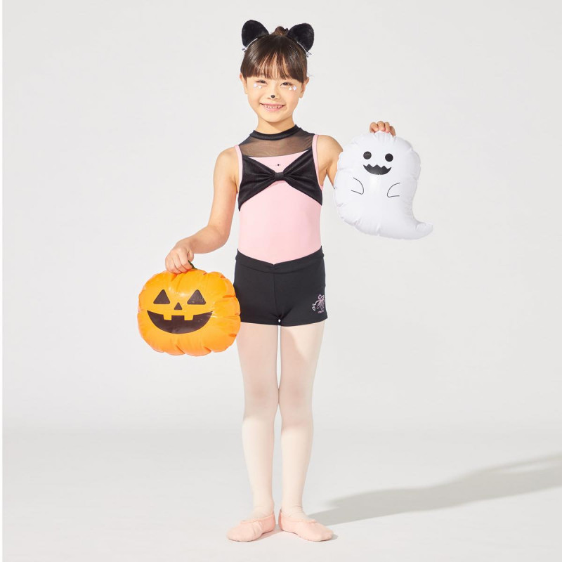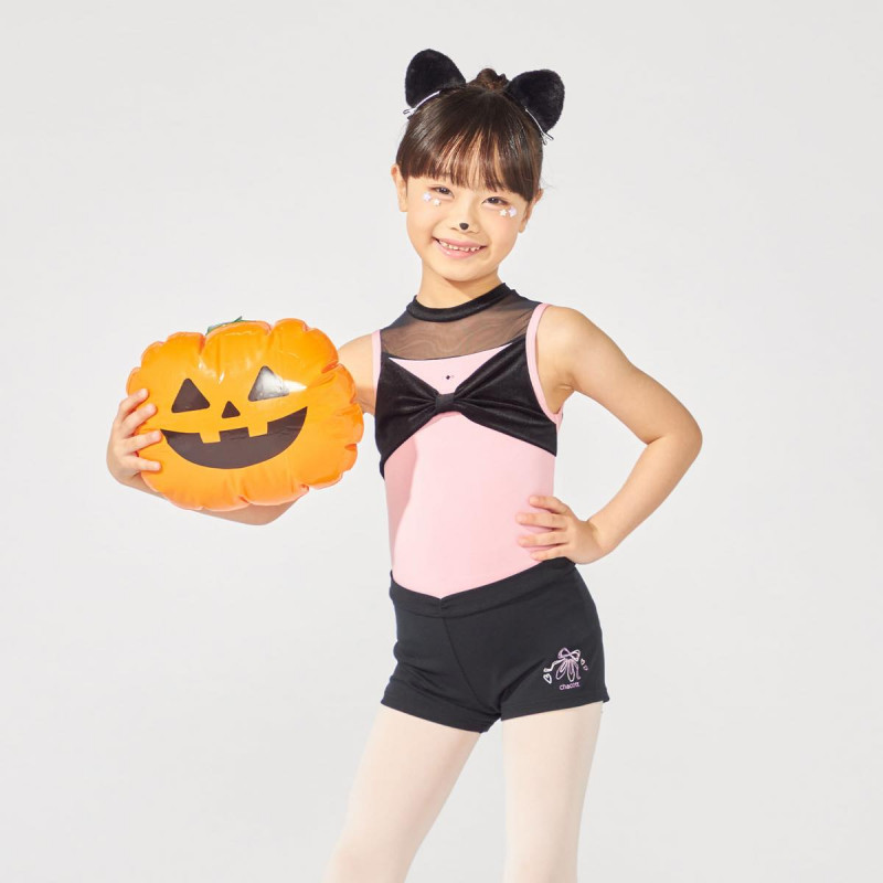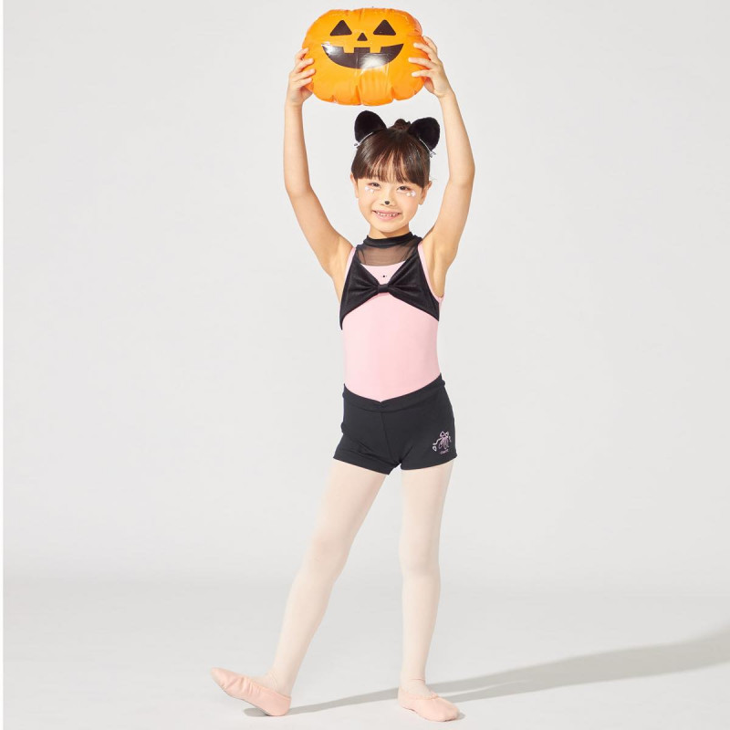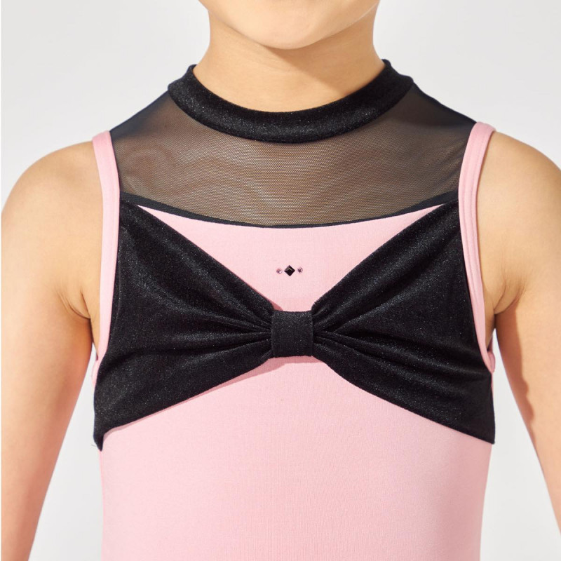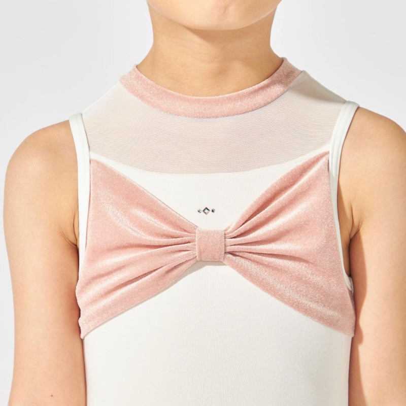 胸元のリボン風ディテールがキュートなハイネックレオタード