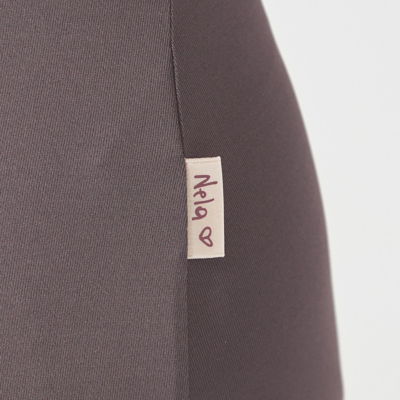 Nela の好みに合わせしっかりと開けたバックスタイルのカッティングは背中をすっきりと見せる細めのVカット。