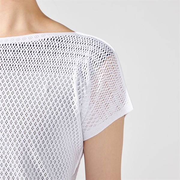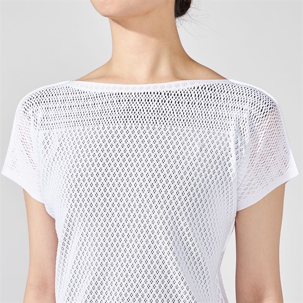 身体のラインを強調しすぎないフィット感で気になる上半身を美しくカバーするコンパクトなシルエットのTシャツ。
