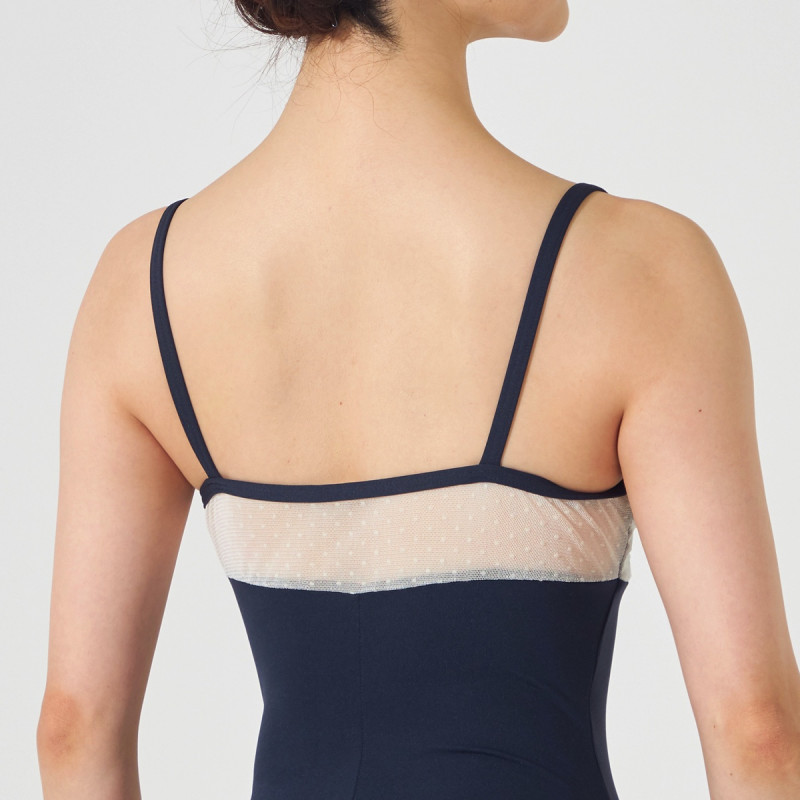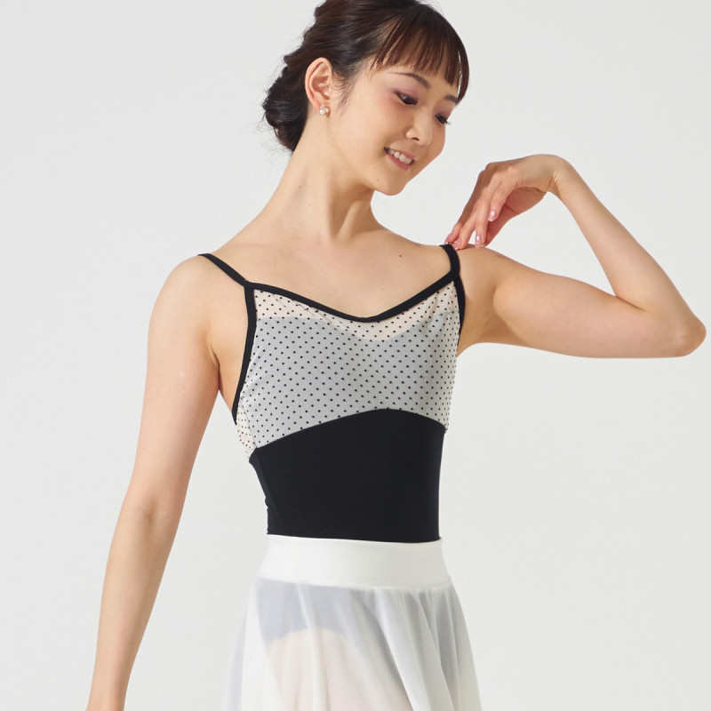 緩やかなVネックがデコルテを美しく見せるキャミソールレオタード