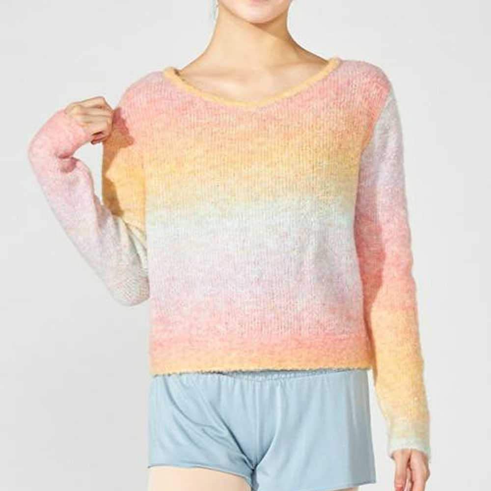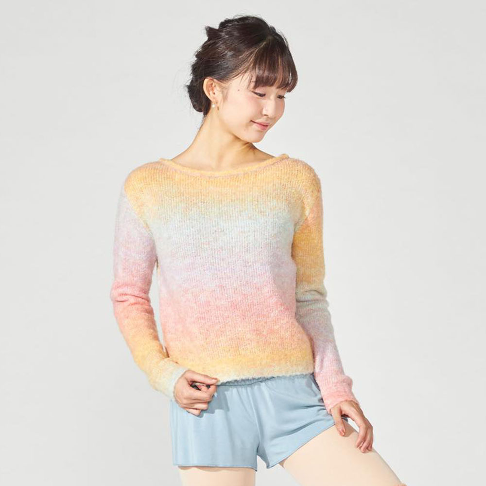 程よいフィット感のトップは、レッスンはもちろん、楽屋や日常でも幅広く活躍します。目を引くグラデーションカラーが冬のスタイルを華やかに彩り、あたたかさもプラス。