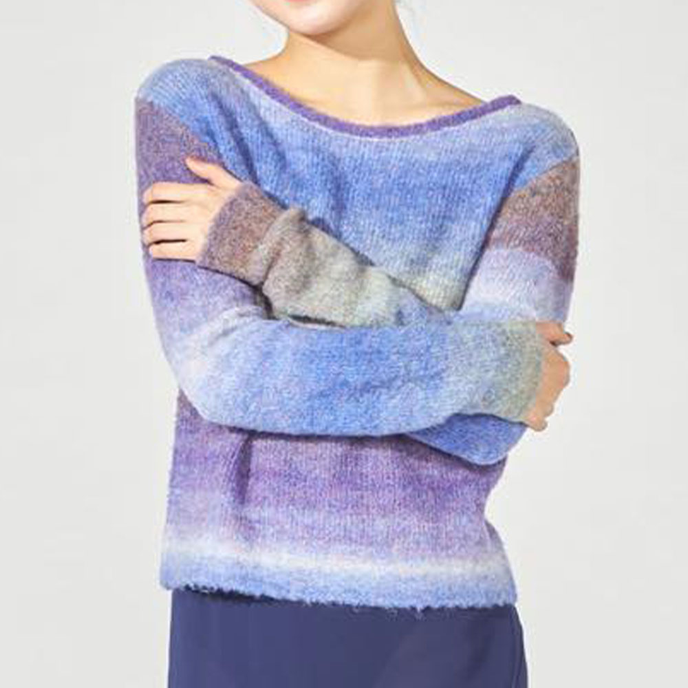 ふわふわとした質感と、毛糸が生み出すグラデーションカラーが魅力のニットアイテム。