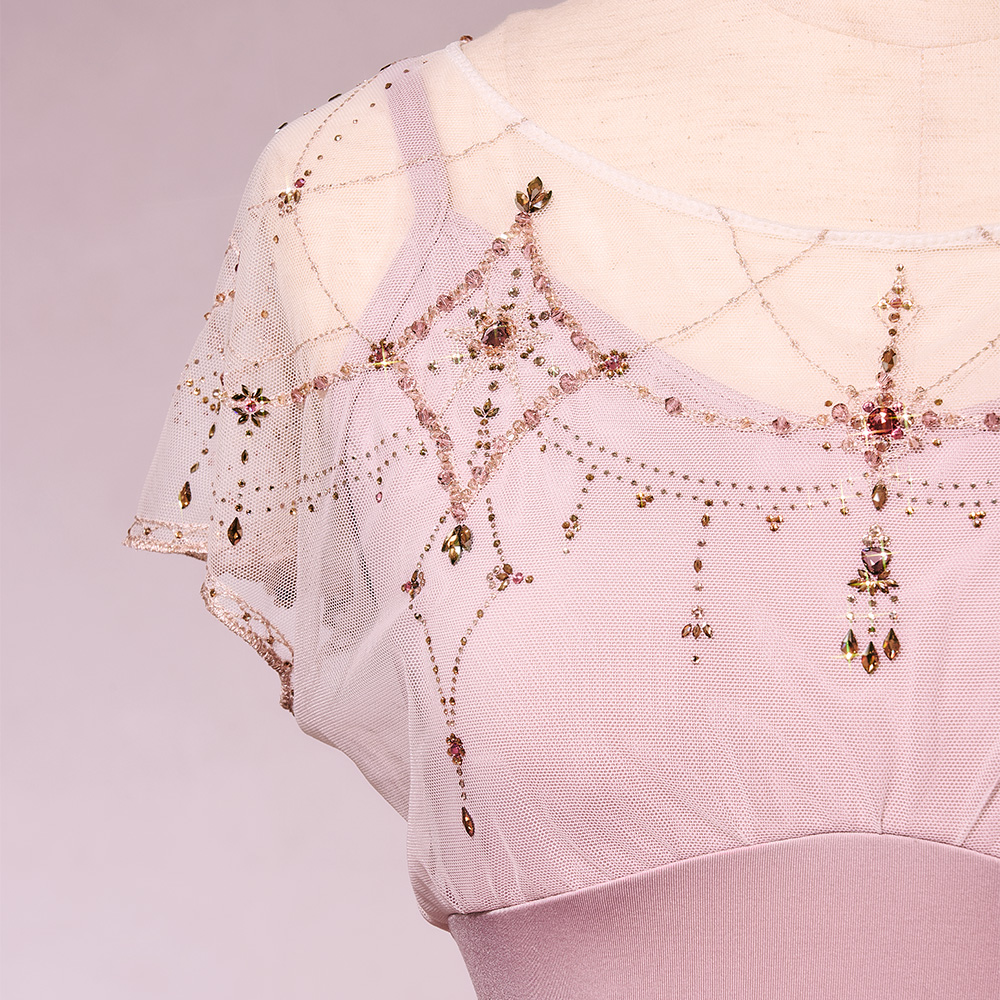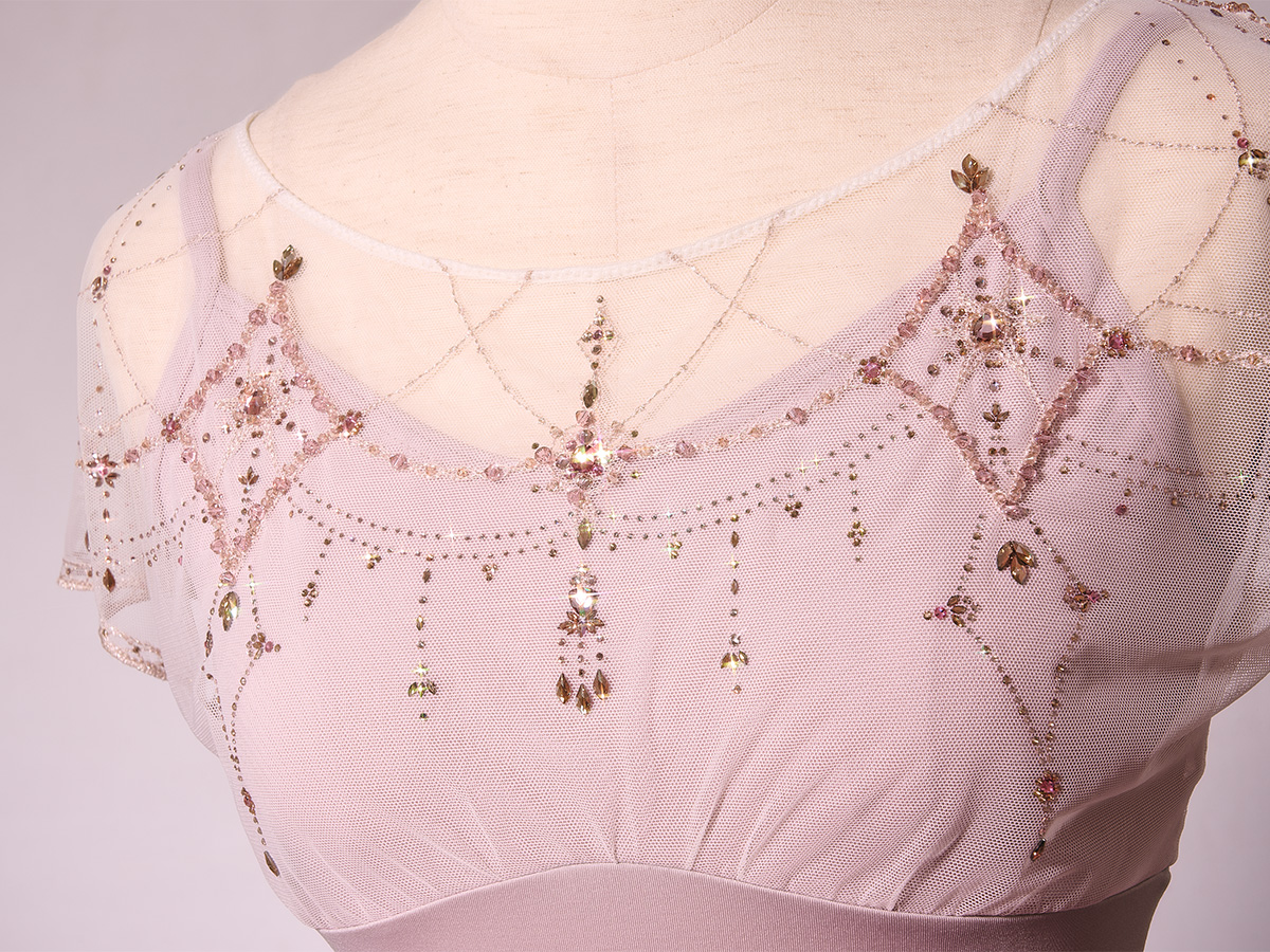 ひとつひとつ職人の手によって作られ、まるで宝石のようにきらめくレオタード。