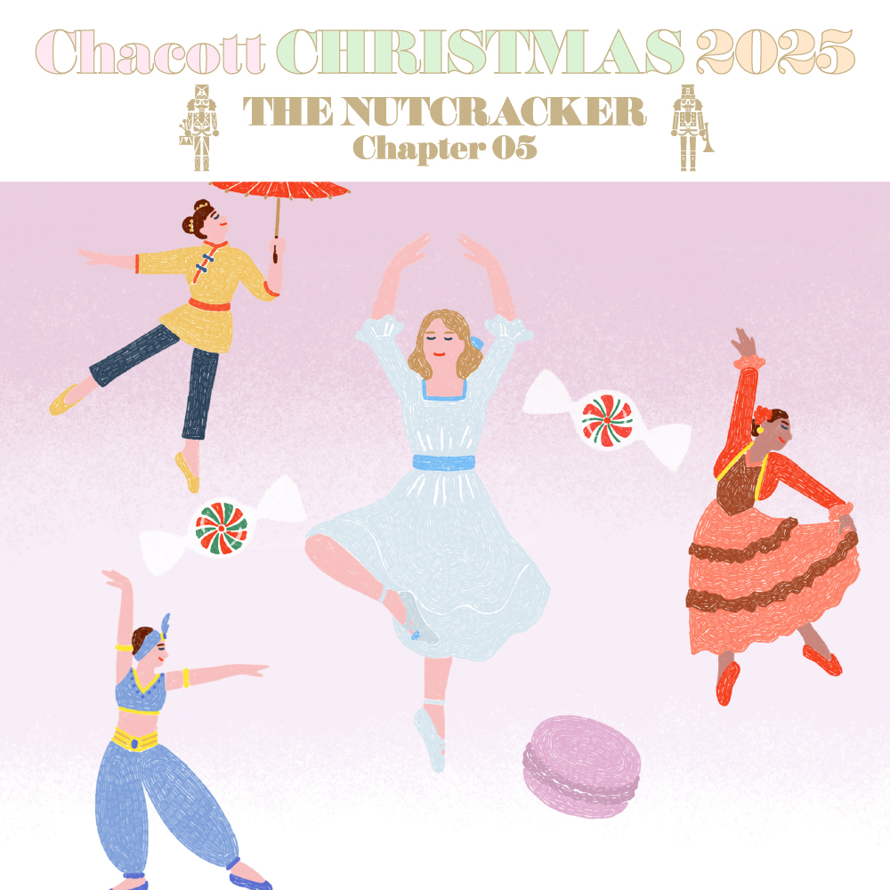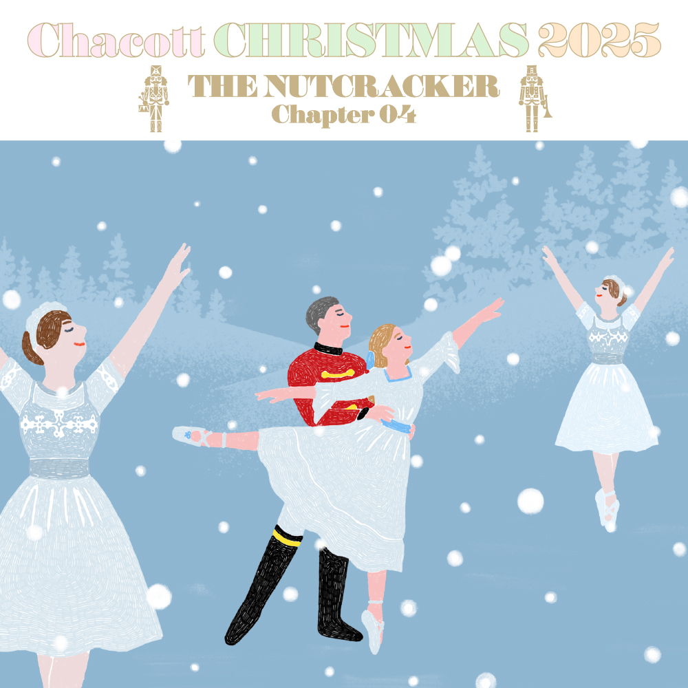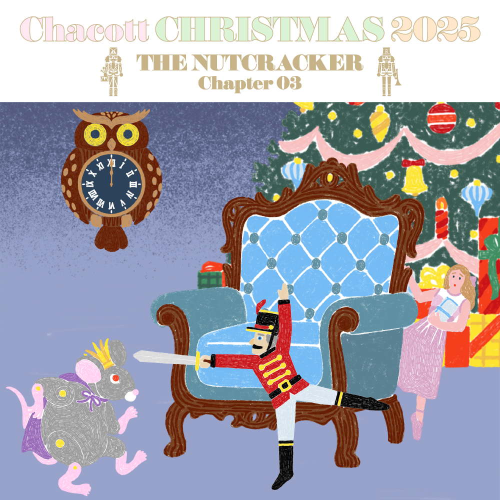 今年のクリスマスは、バレエが大好きな主人公・クララの特別な物語をスペシャルアニメーションで毎週お届けします。 イラストは柿崎サラさんの作品。 アニメーションに隠された、チャコットのアイテムをぜひ探してみてくださいね!