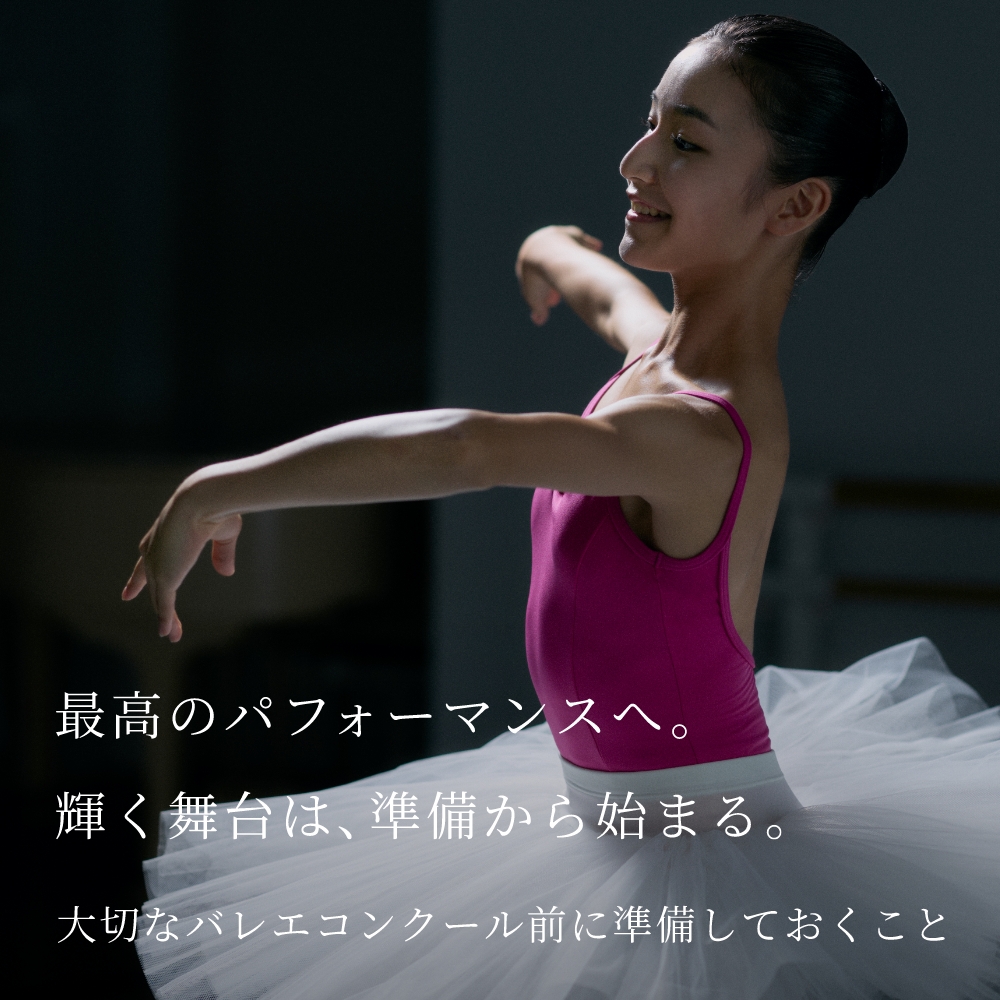 緊張が募るコンクール当日。身体がこわばりやすい時こそ、心身をほど良くリラックスさせる準備が、みなさんの強い味方に。ウォームアップウェアとマッサージアイテムで心地良く身体をほぐしながら、集中するためのコンディションを引き寄せましょう。