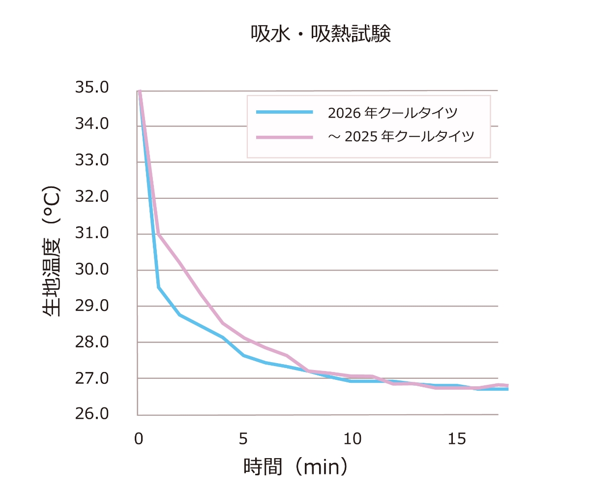 従来品(2025年度版クールタイツ)と比べ、汗をかいたときに涼しさを感じるまでのスピードが向上しました。