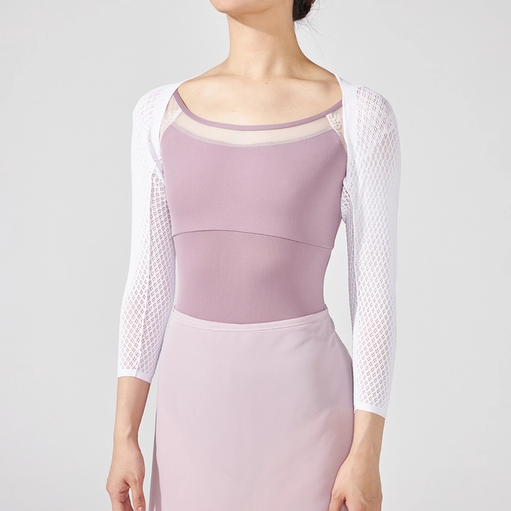 汗ばむ季節のレッスンにぴったりな、レオタードやブラトップの上からサッと着られるベーシックなアームカバー。軽量で持ち運びしやすく、ヒジ周りをカバーしつつ腕を長く美しく見せる7分袖デザインです。