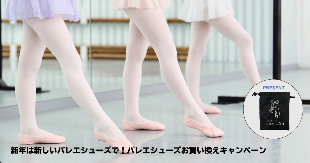 新年は心機一転、新しいバレエシューズでレッスンを始めませんか?使い慣れた同じシューズを新調したり、気になっていたバレエシューズにトライしてみても。期間中にオンラインショップでバレエシューズを購入いただいたお客様に、オリジナル半メッシュシューズ巾着をプレゼントいたします。