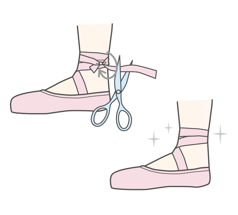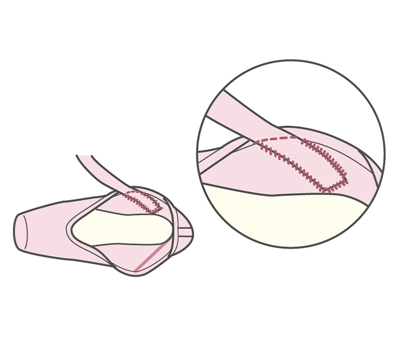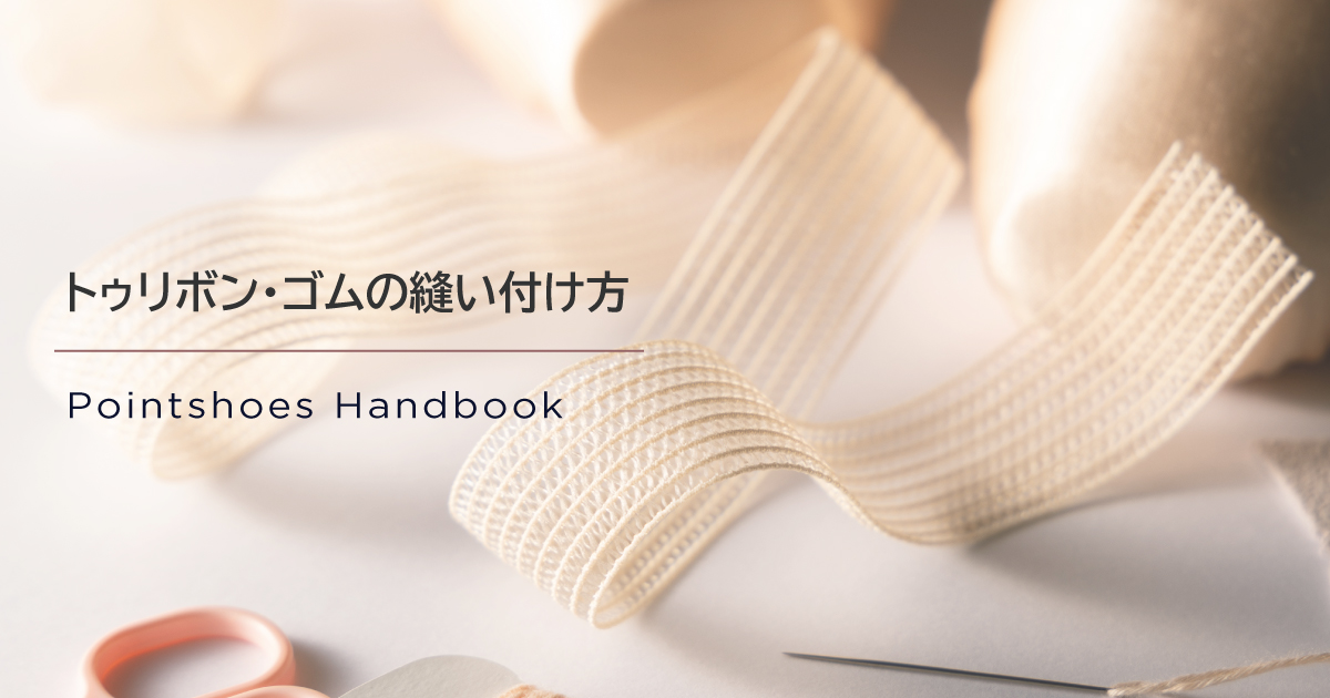 ダンサーの踊りを足元から支える大切なトゥシューズ。踊っている最中にトゥリボンやトゥゴムが取れないよう、しっかり縫い付けましょう。