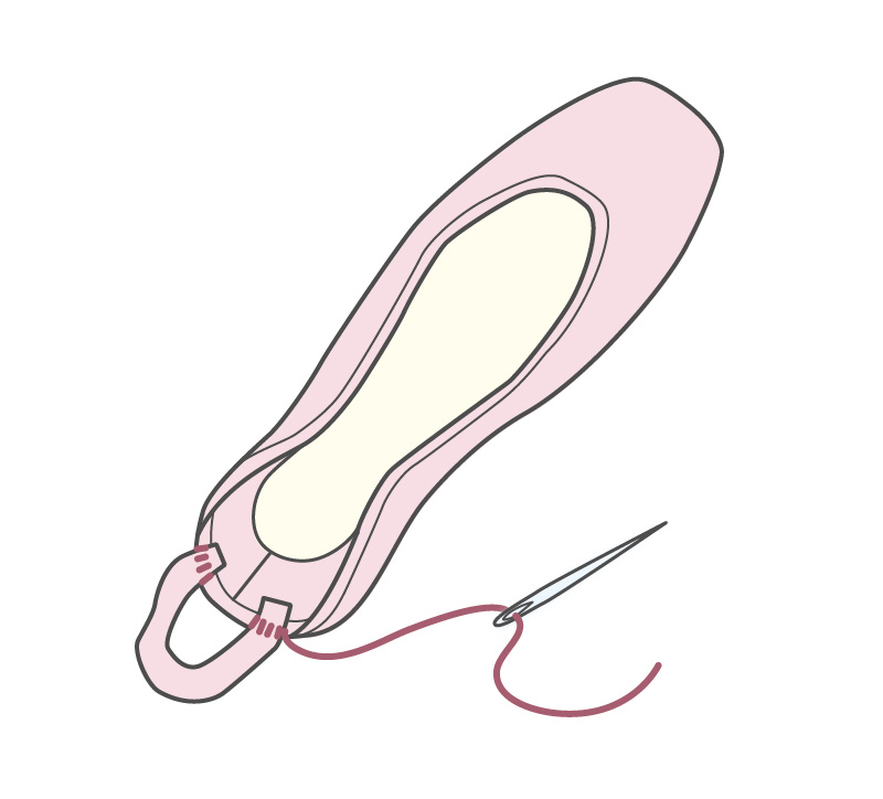 ソールに出来るだけ近いところを、数回返し縫いしてしっかりと付けましょう。