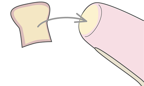 レザーボンドをトゥシューズのつま先部分とパッドの両方にムラなく塗り、乾くまで待ちます。触っても指に付かなくなったら塗った面をしっかりと貼り合わせます。