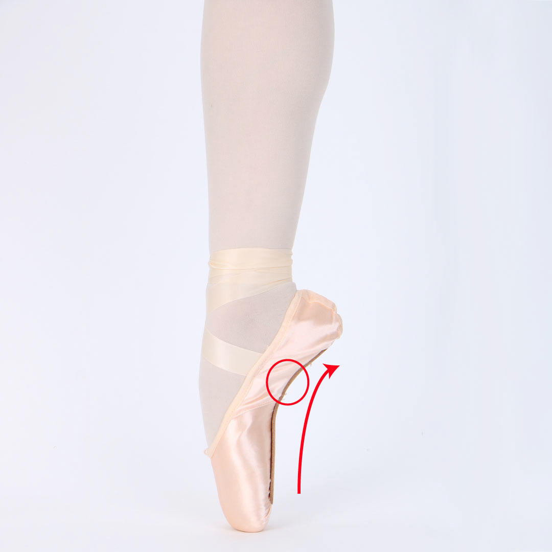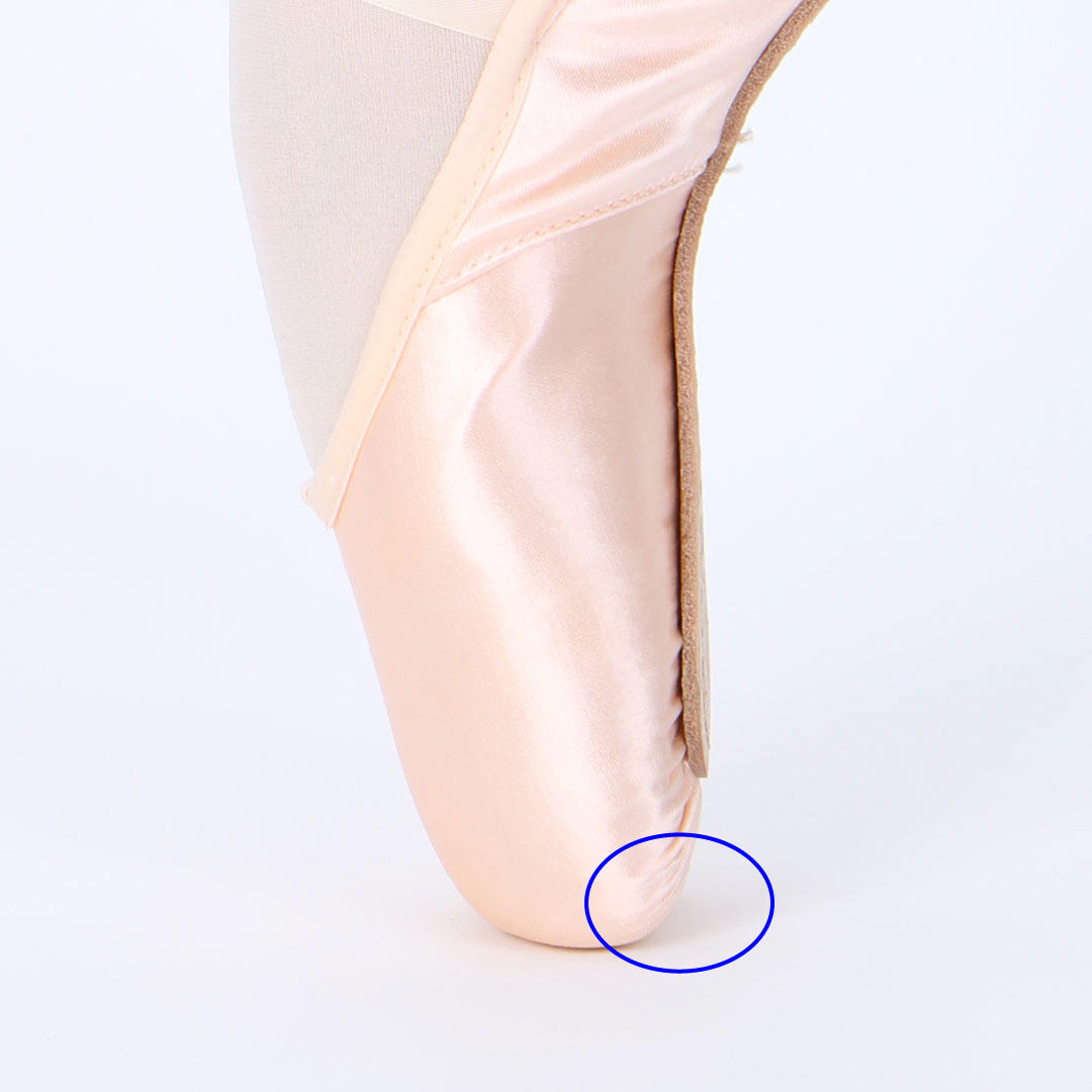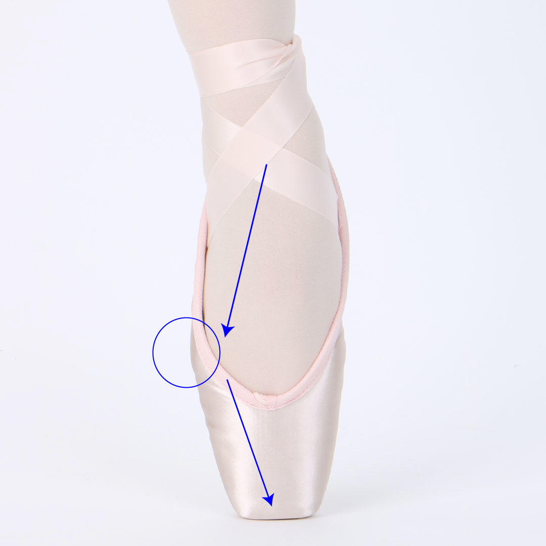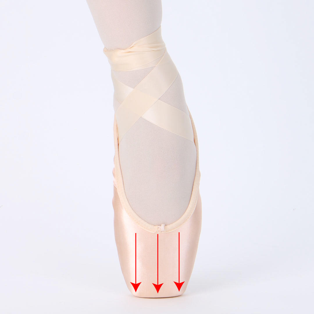 スクエアシルエットのトゥシューズを履くことで、シューズの中で指をしっかりと伸ばすことができます。全体のシルエットもトゥ先まで滑らかな形になり、それぞれの指にかかる負荷が均等になります。
