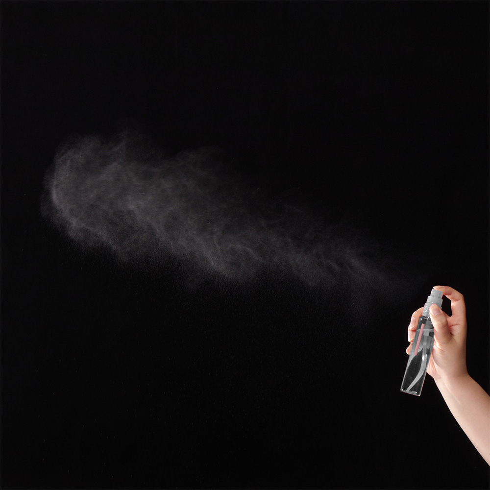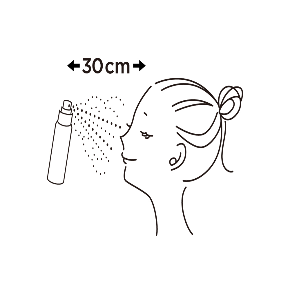 細かいミストは広範囲に広がり、顔全体に密着します。