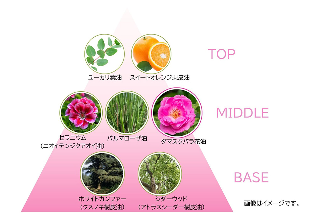 季節問わず人気のローズをメインにしたローズ調フローラルの香りに。