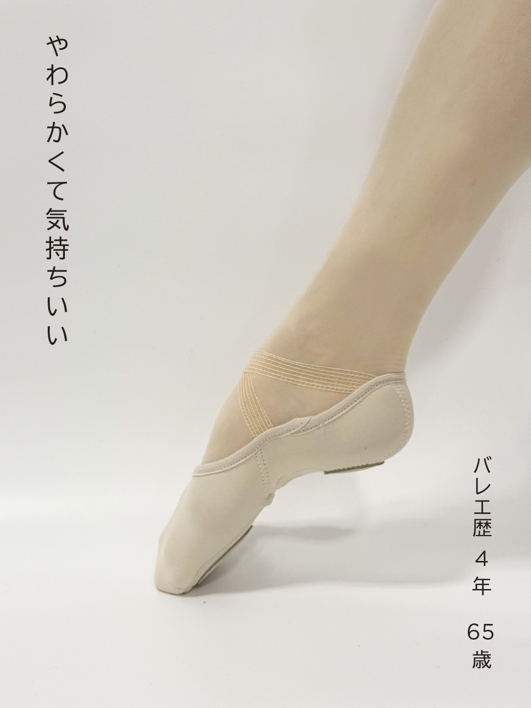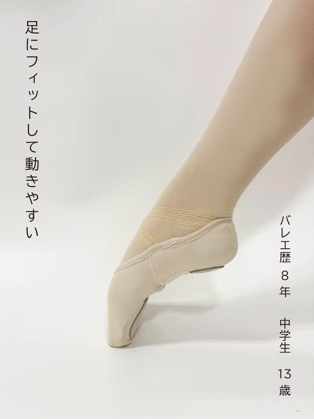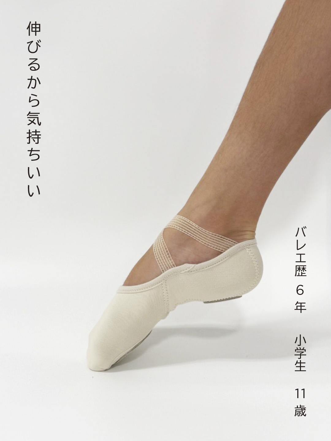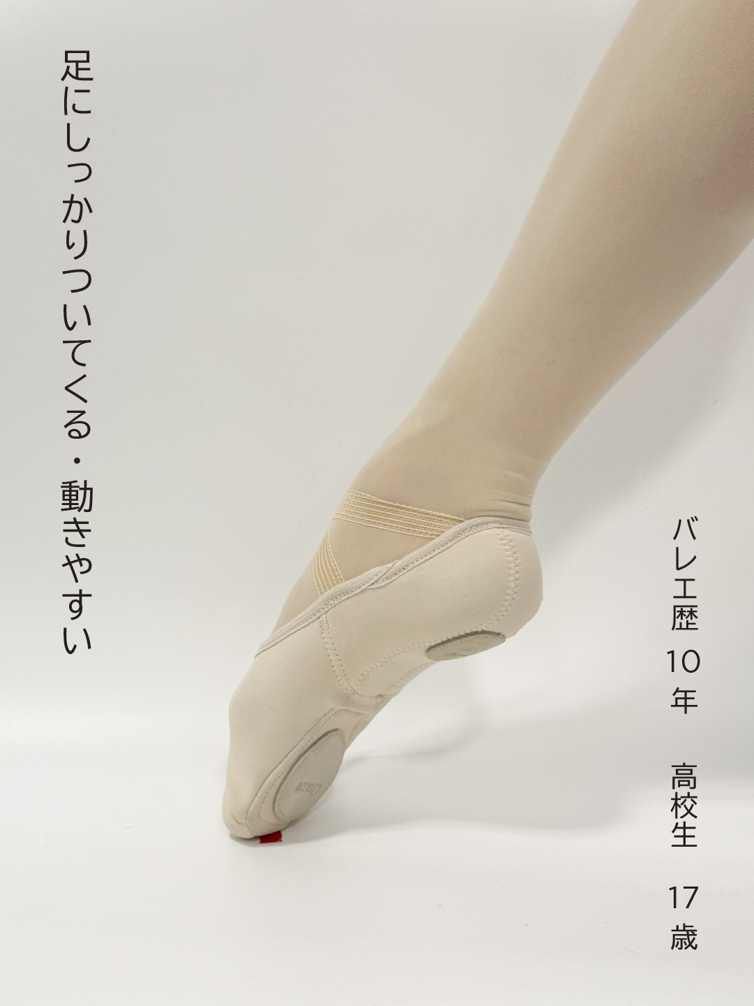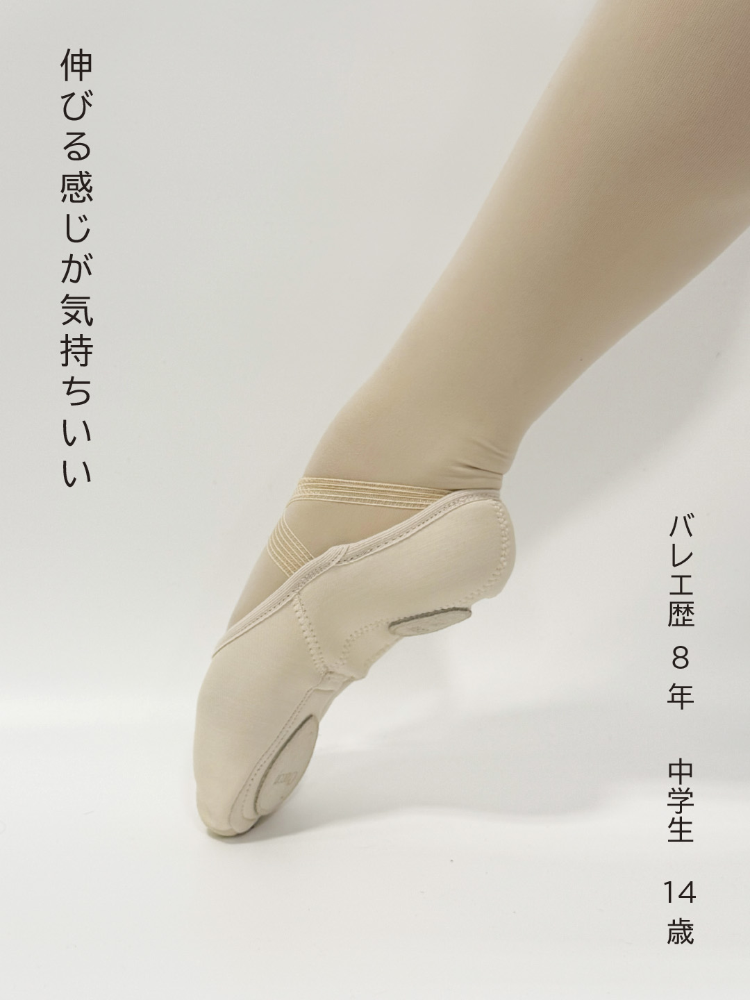 「ストレッチが効いていてもズレないバレエシューズ」を