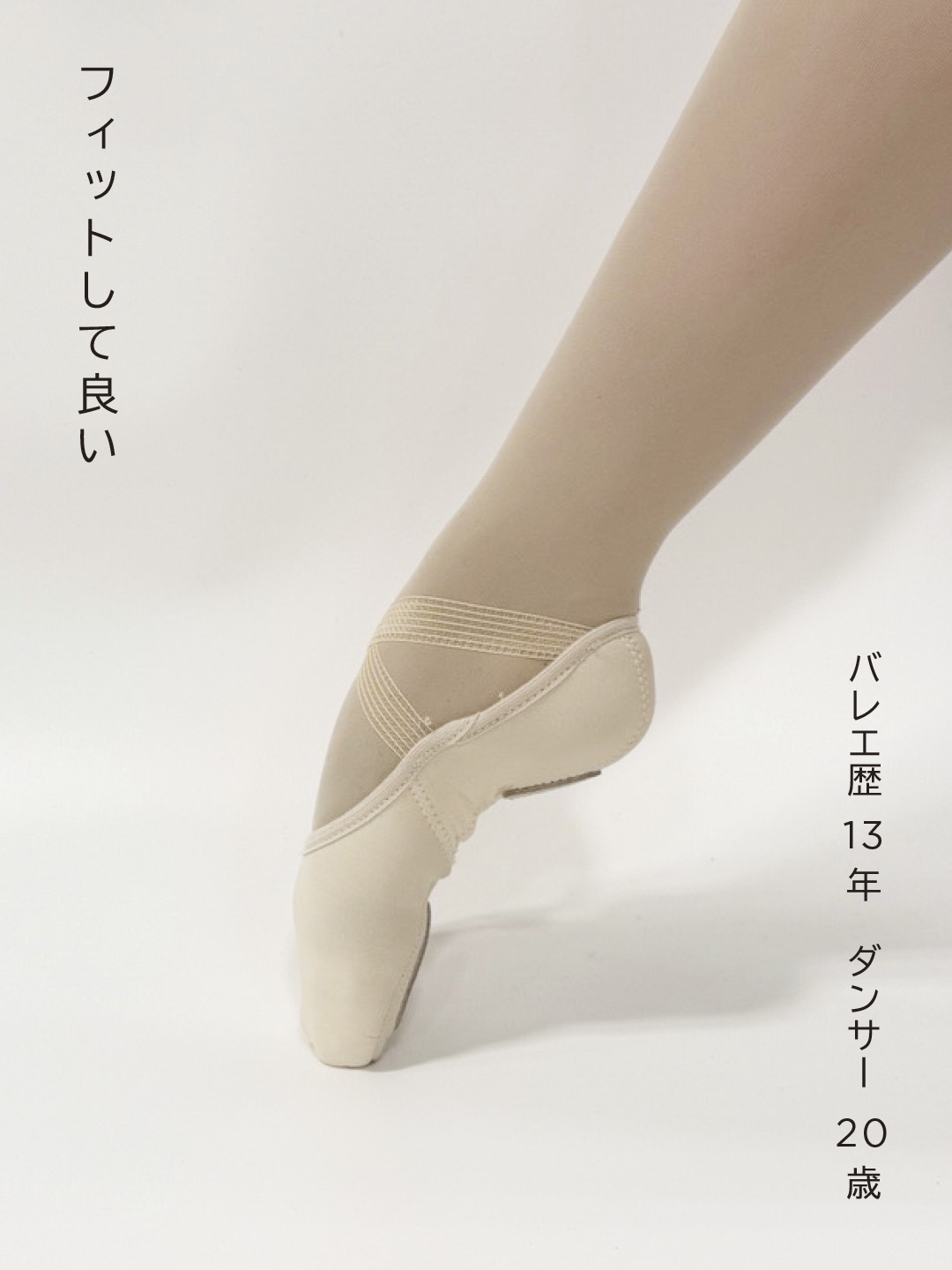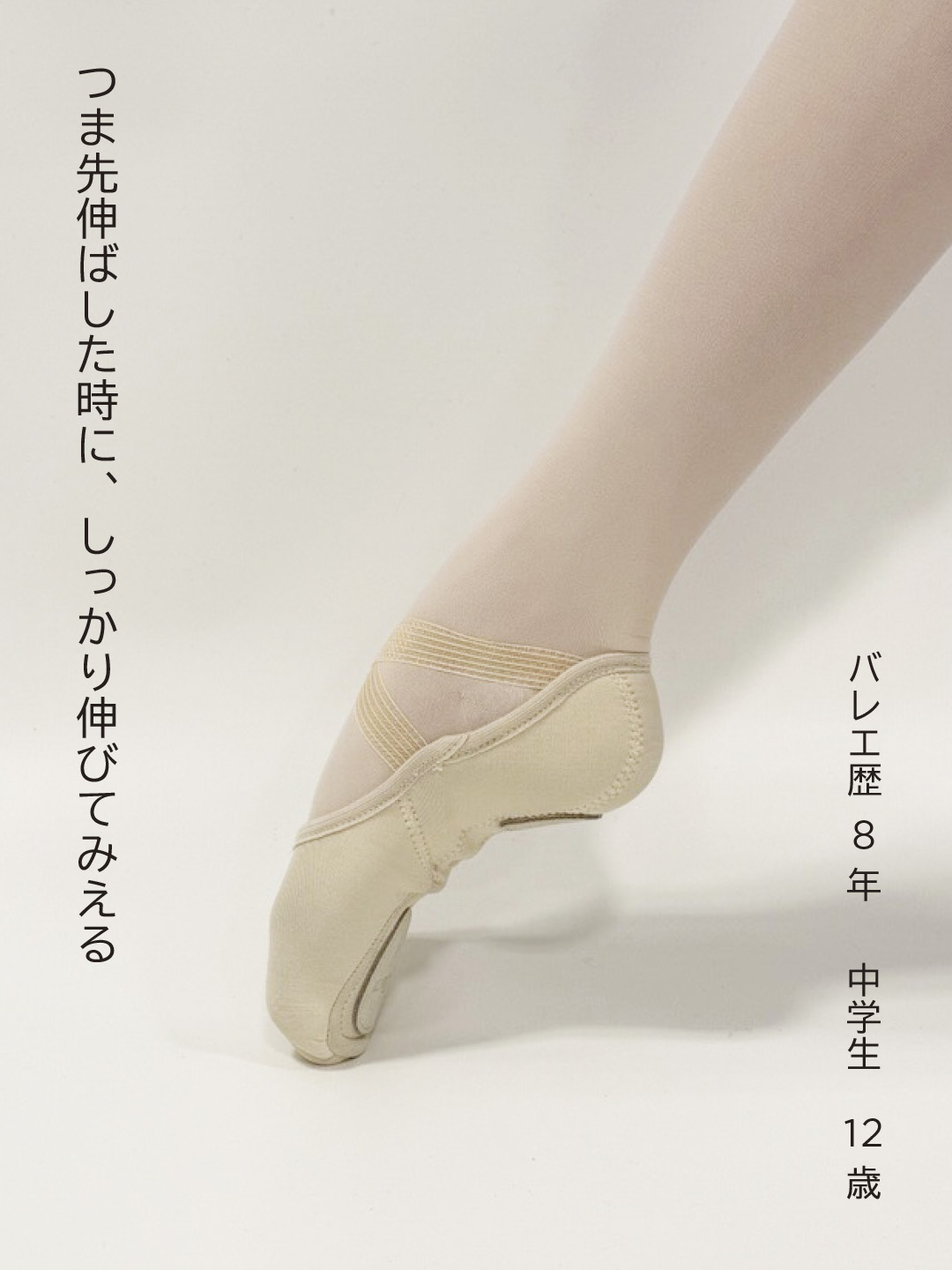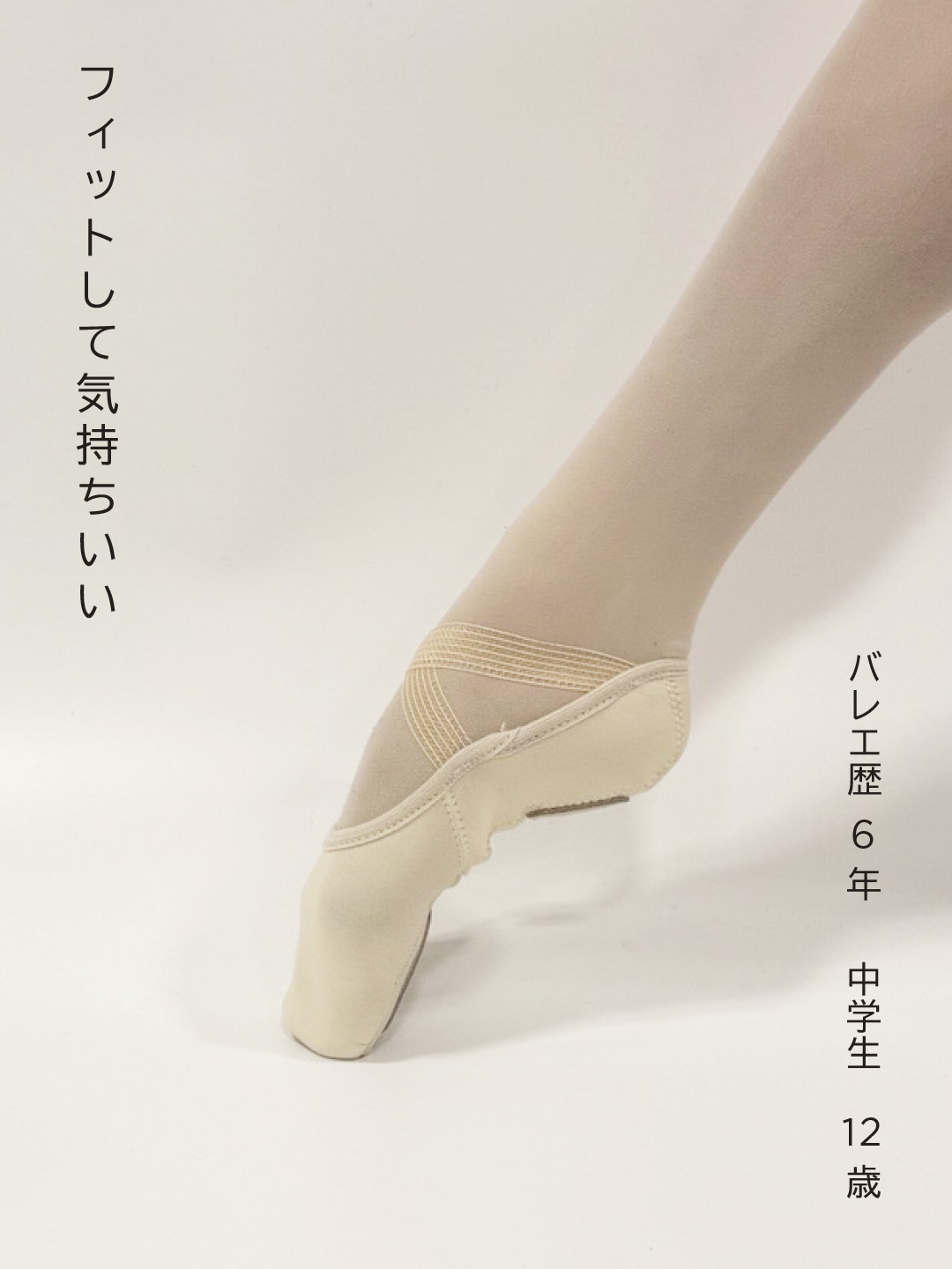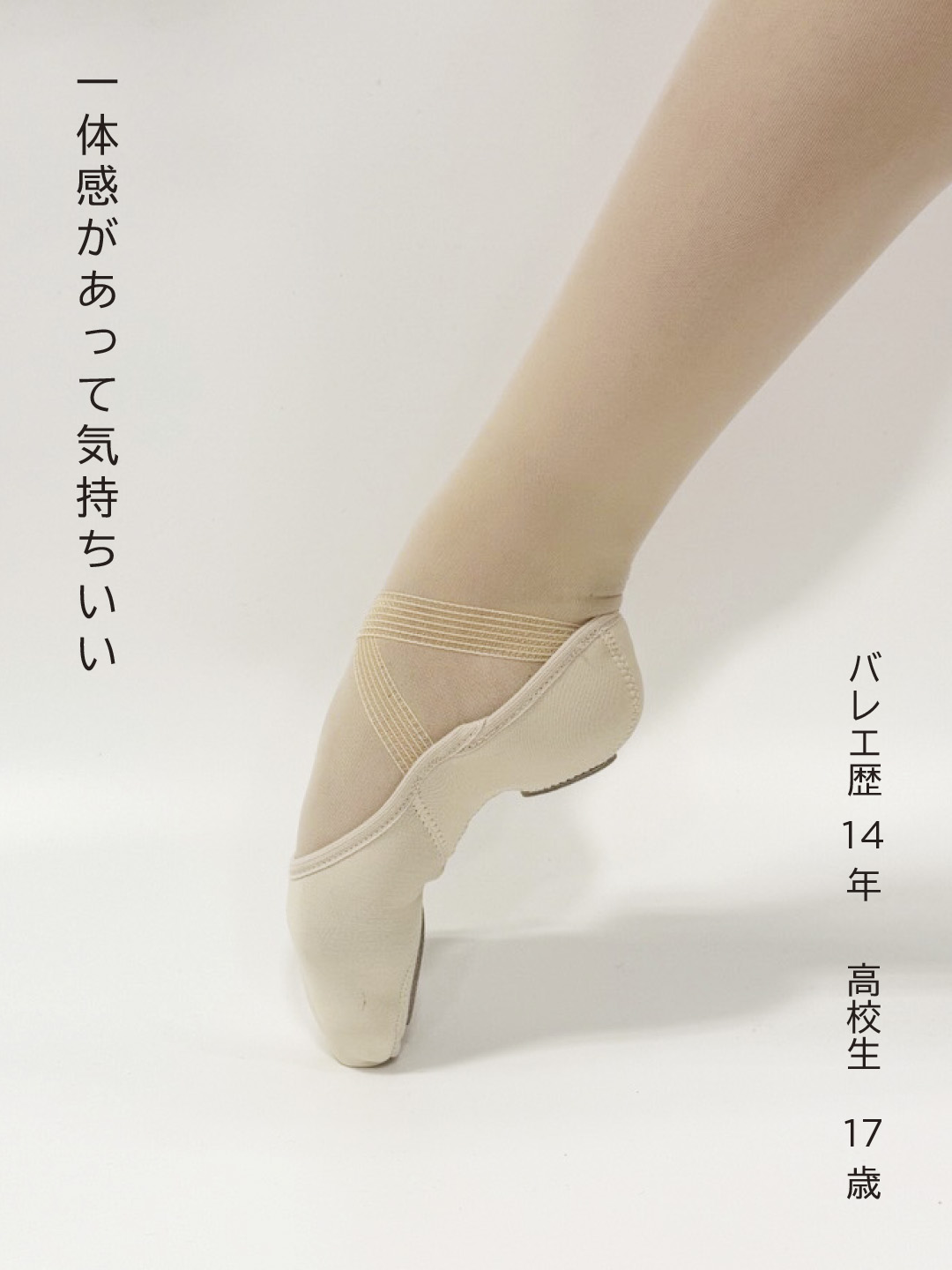 「ストレッチが効いていてもズレないバレエシューズ」を