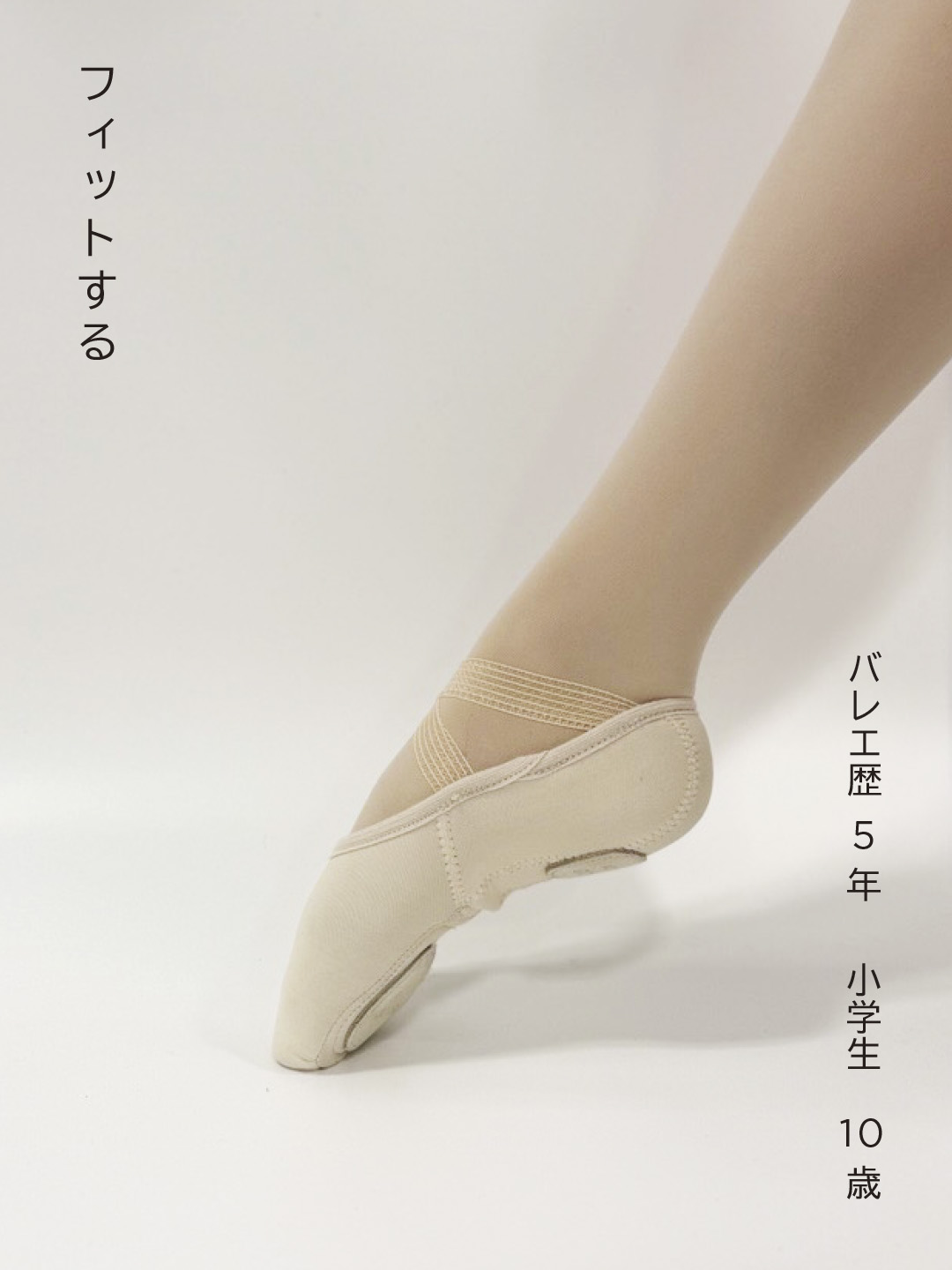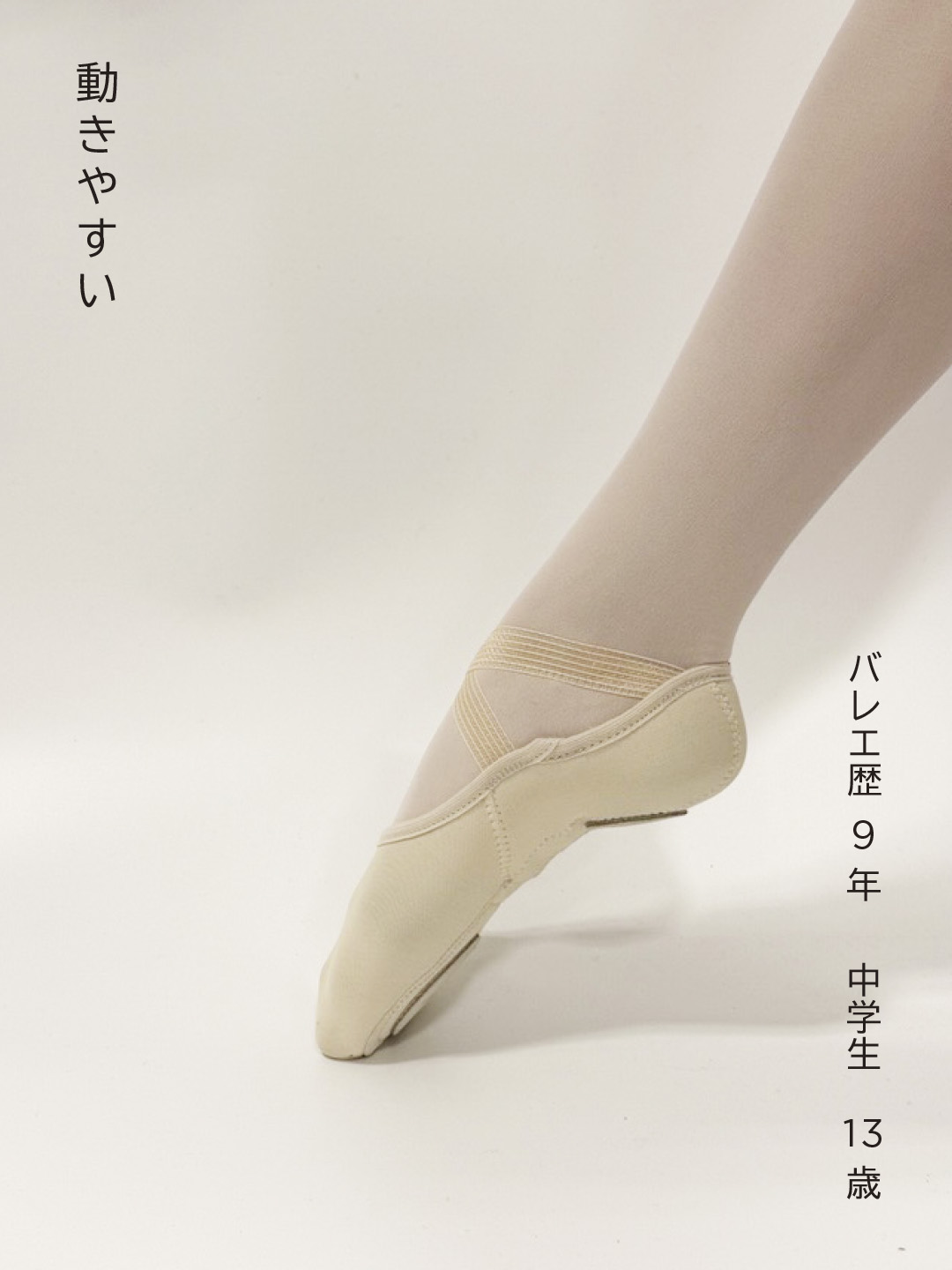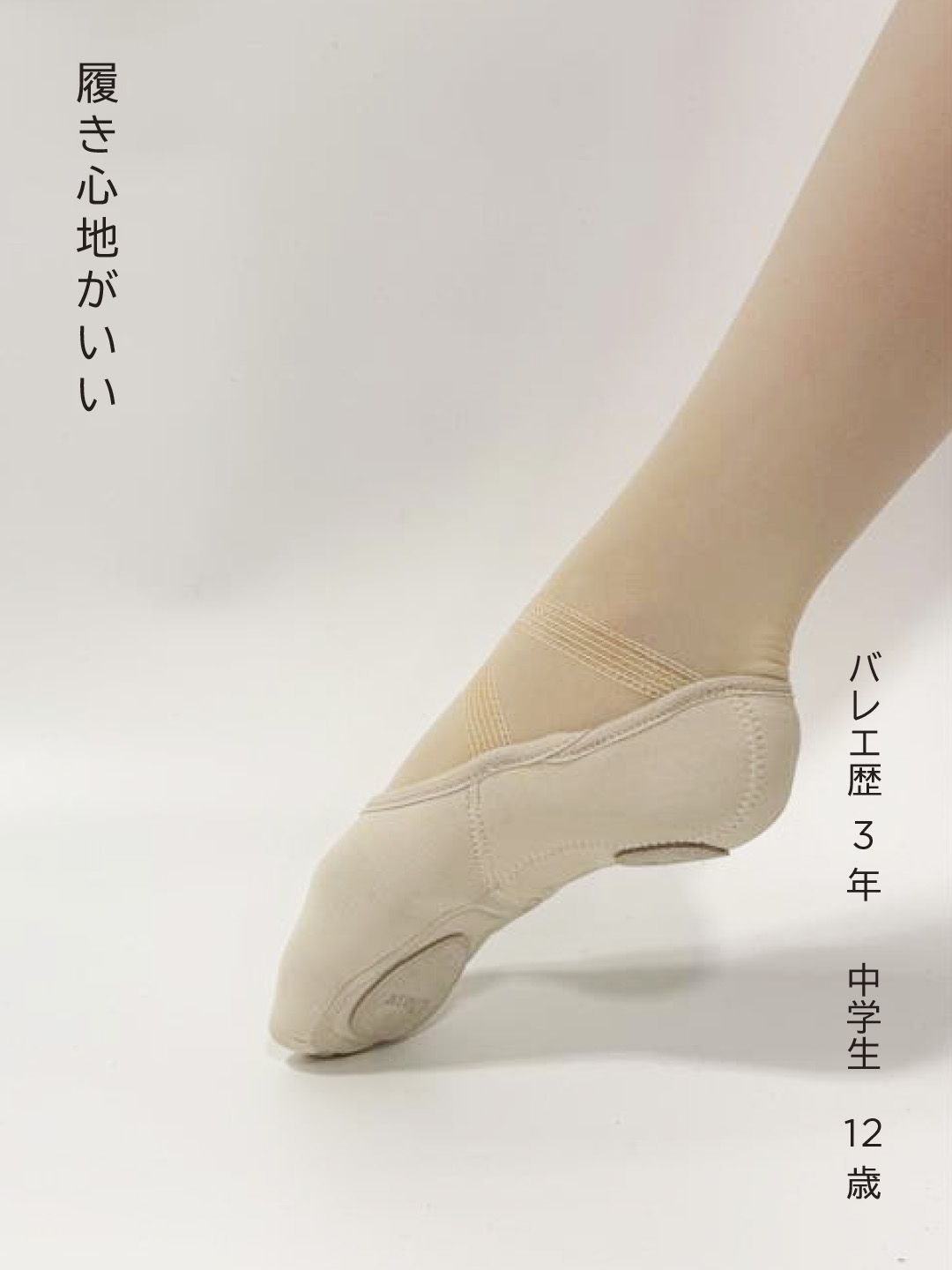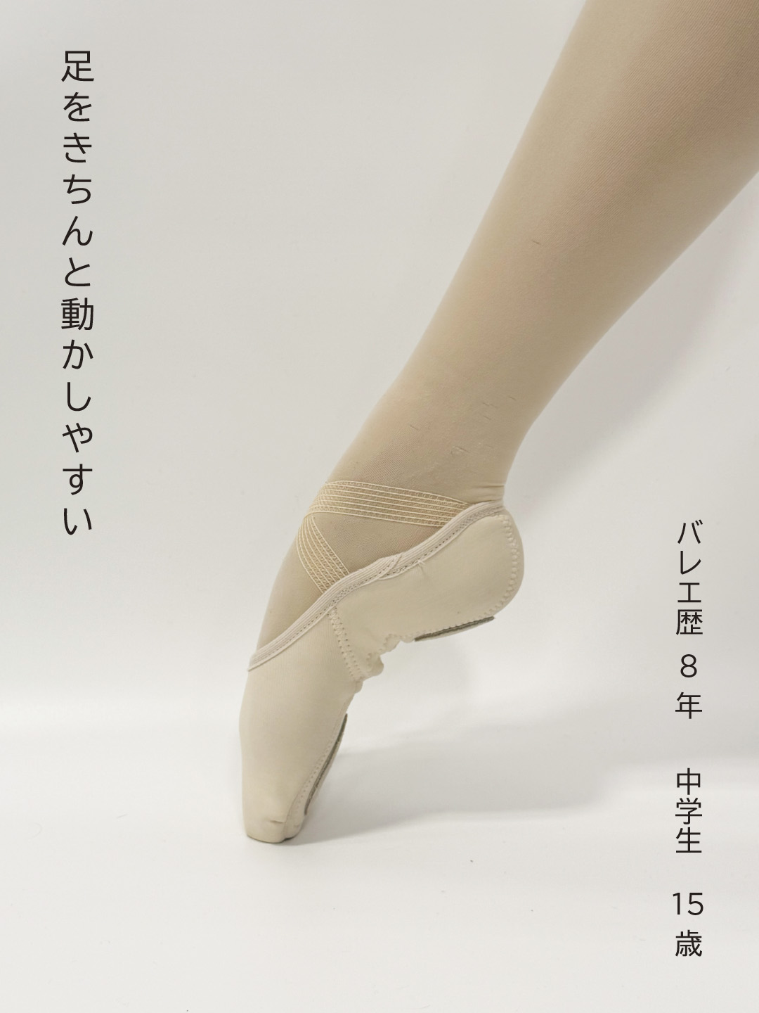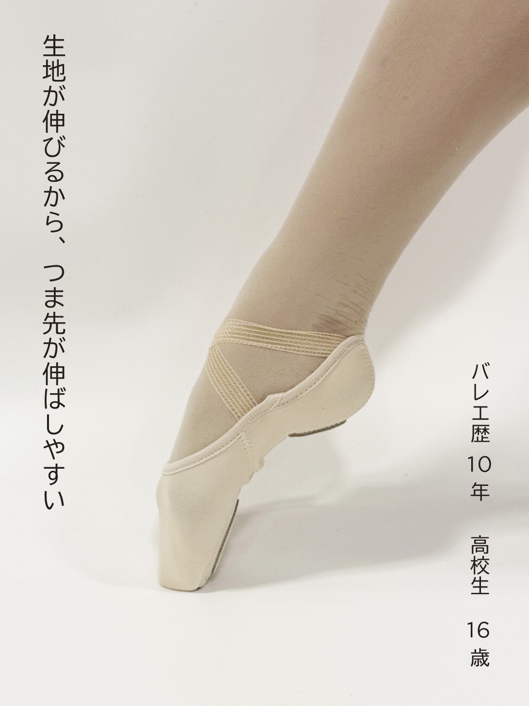 「ストレッチが効いていてもズレないバレエシューズ」を
