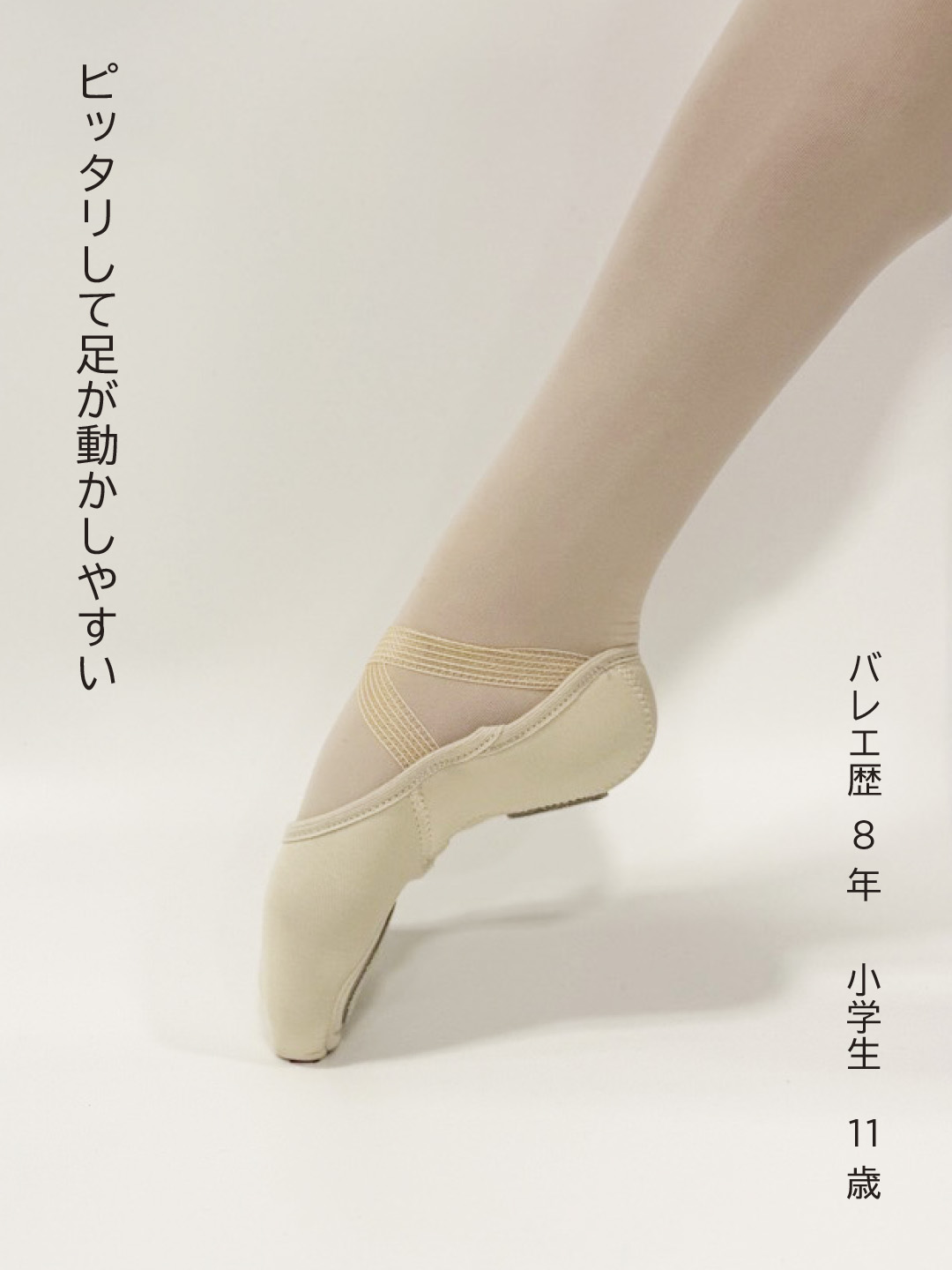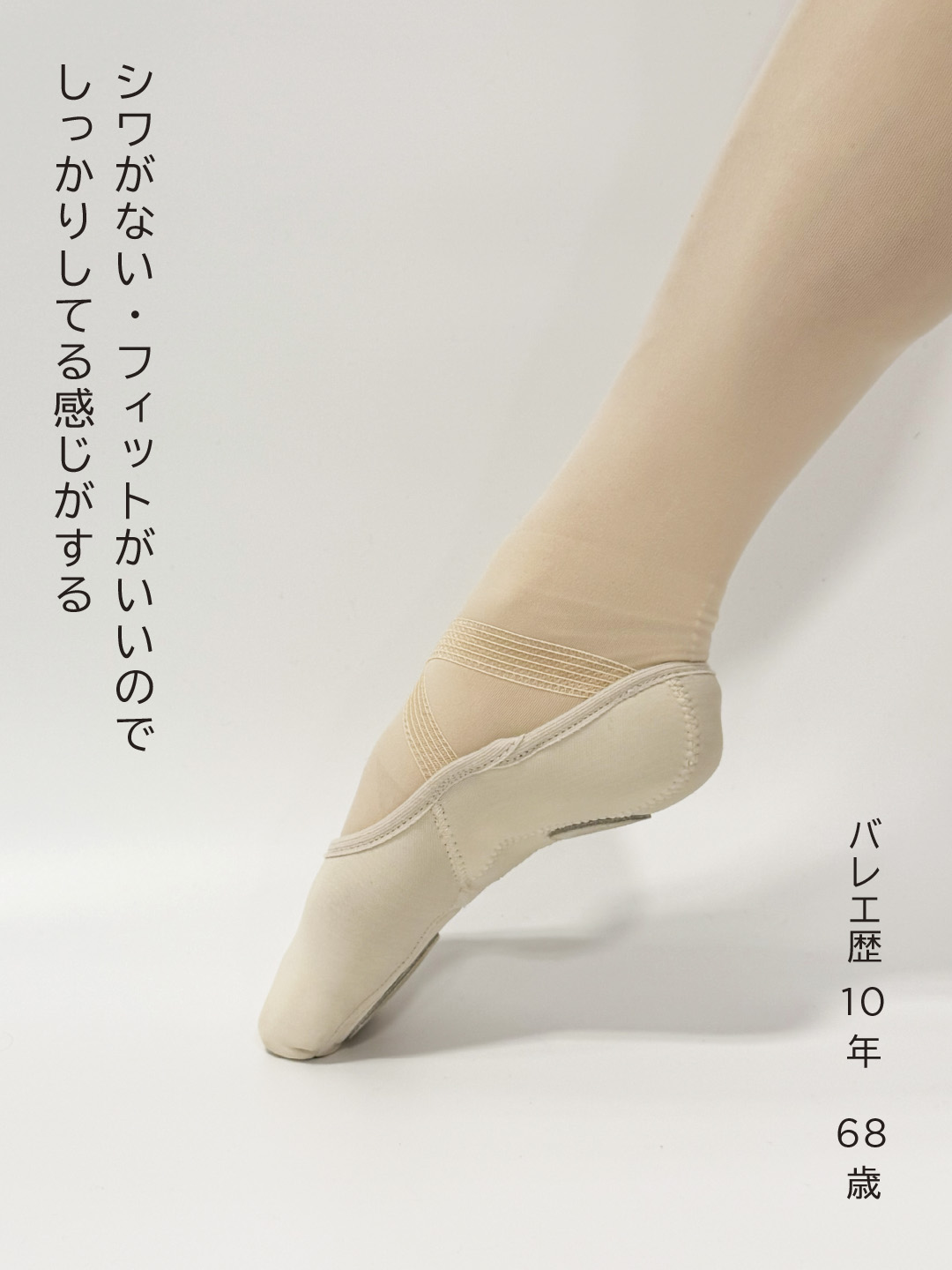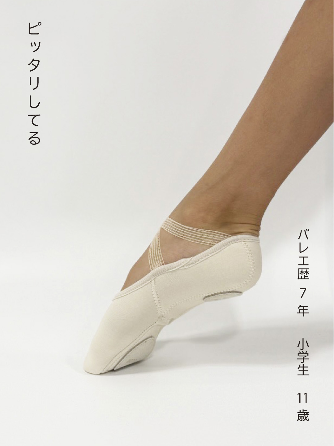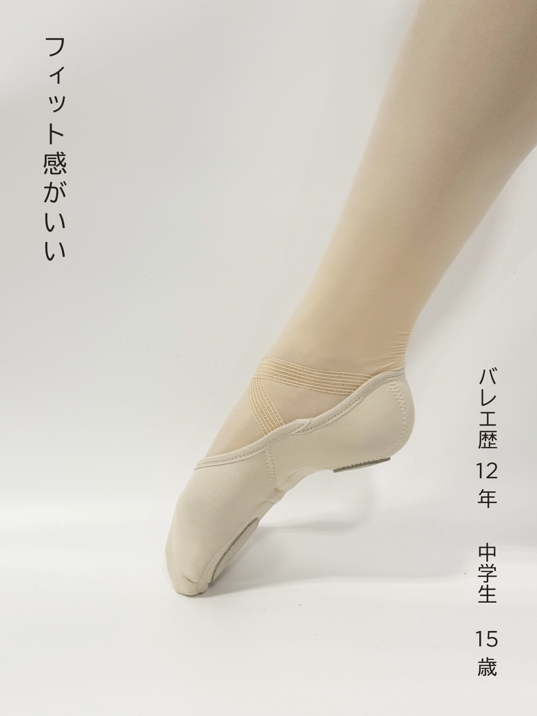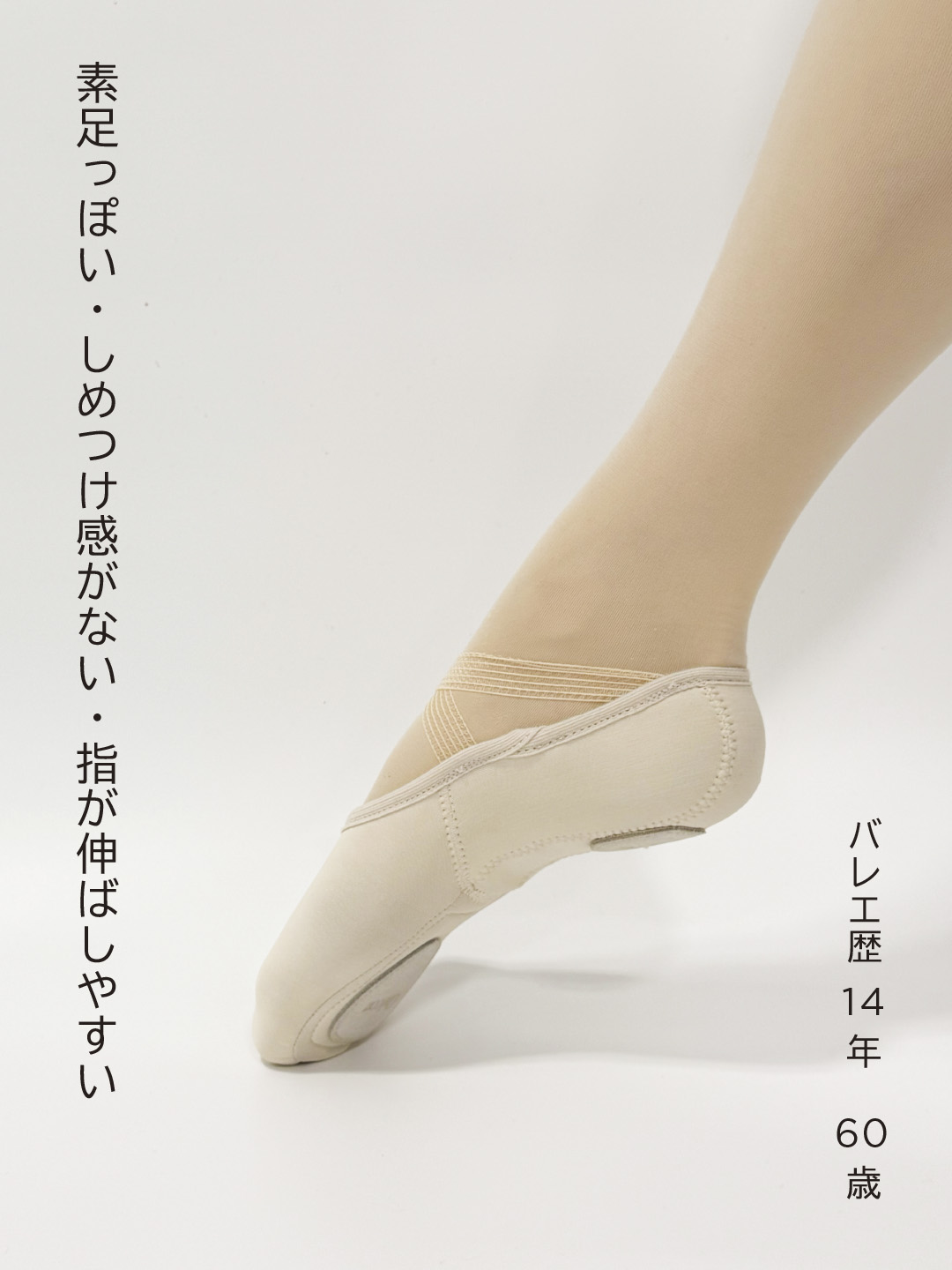 「ストレッチが効いていてもズレないバレエシューズ」を