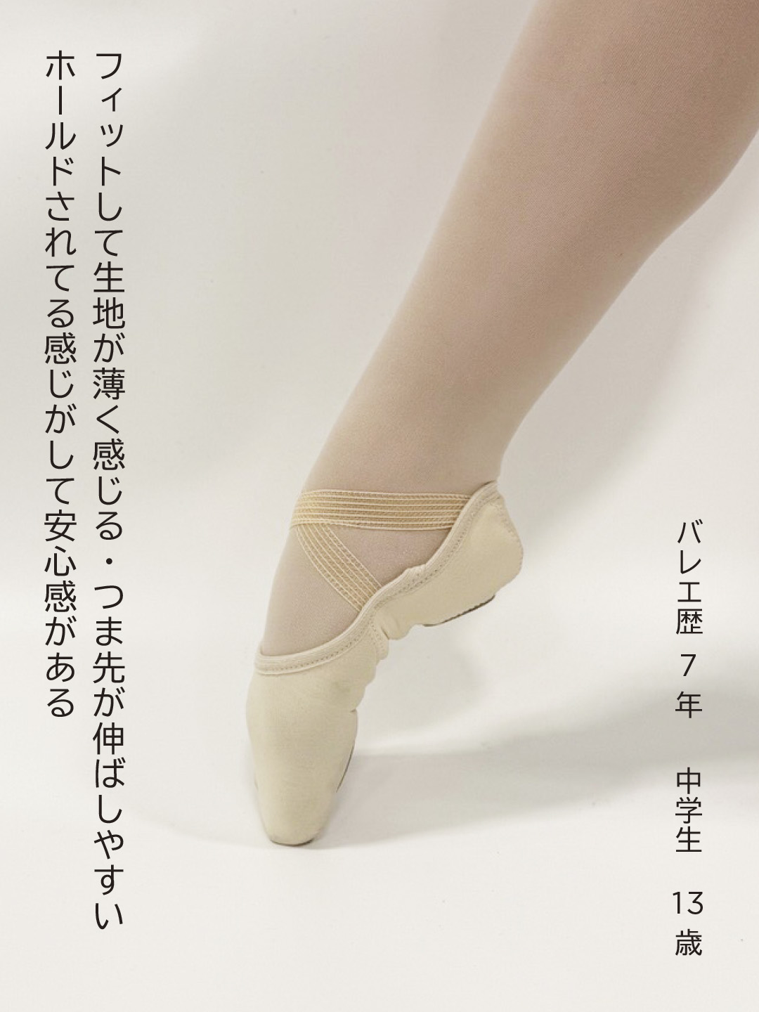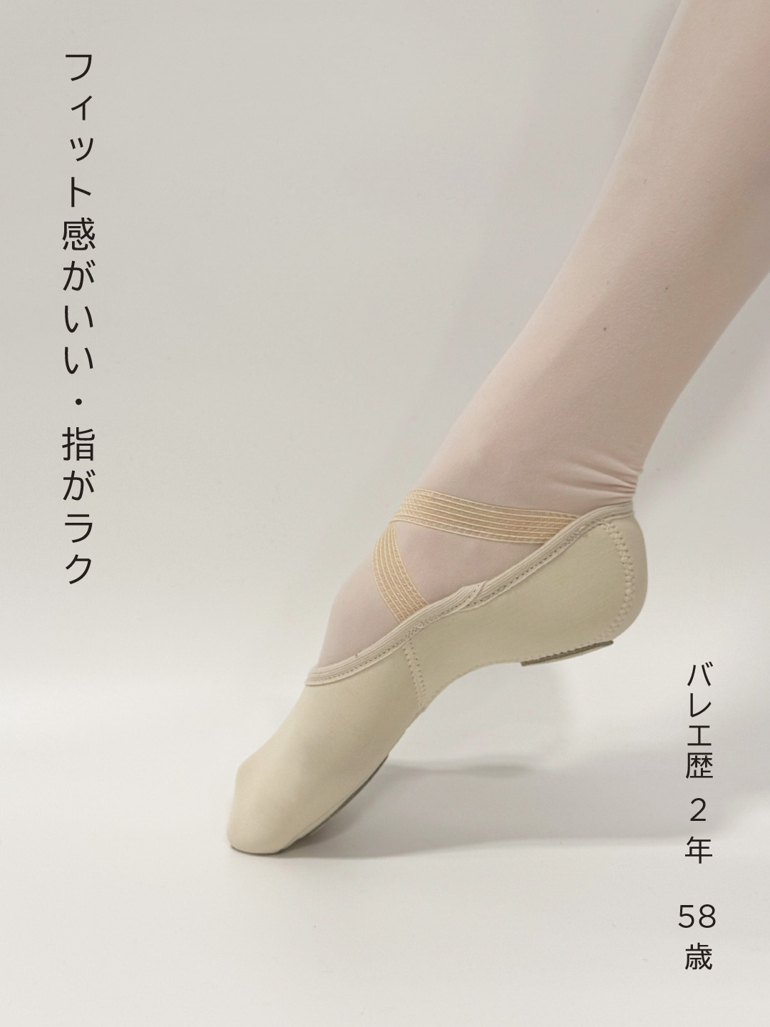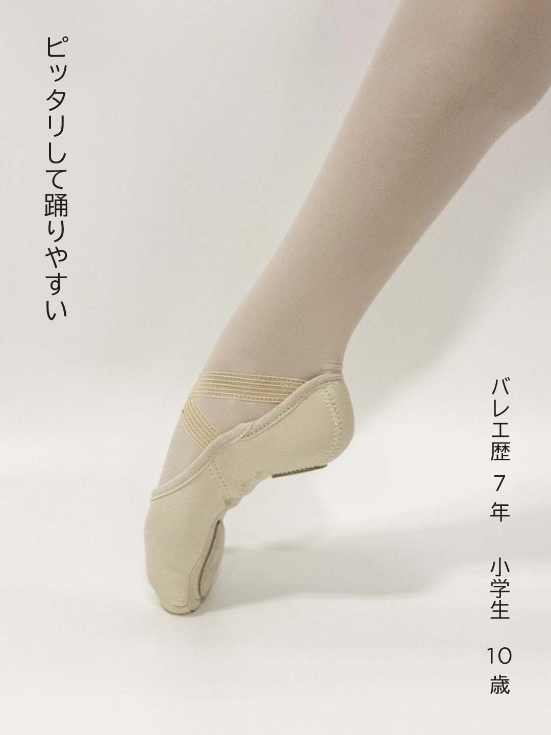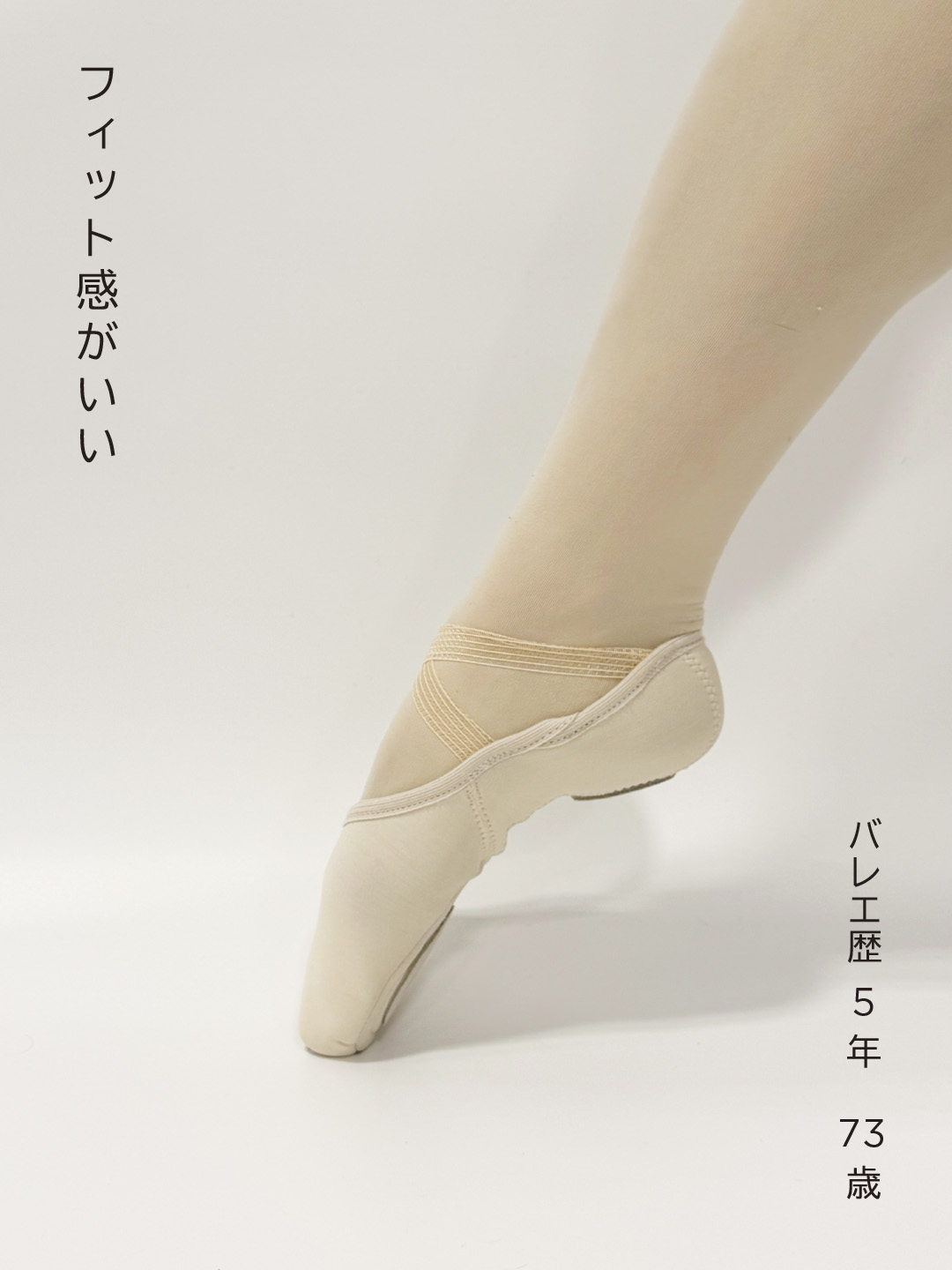 「ストレッチが効いていてもズレないバレエシューズ」を