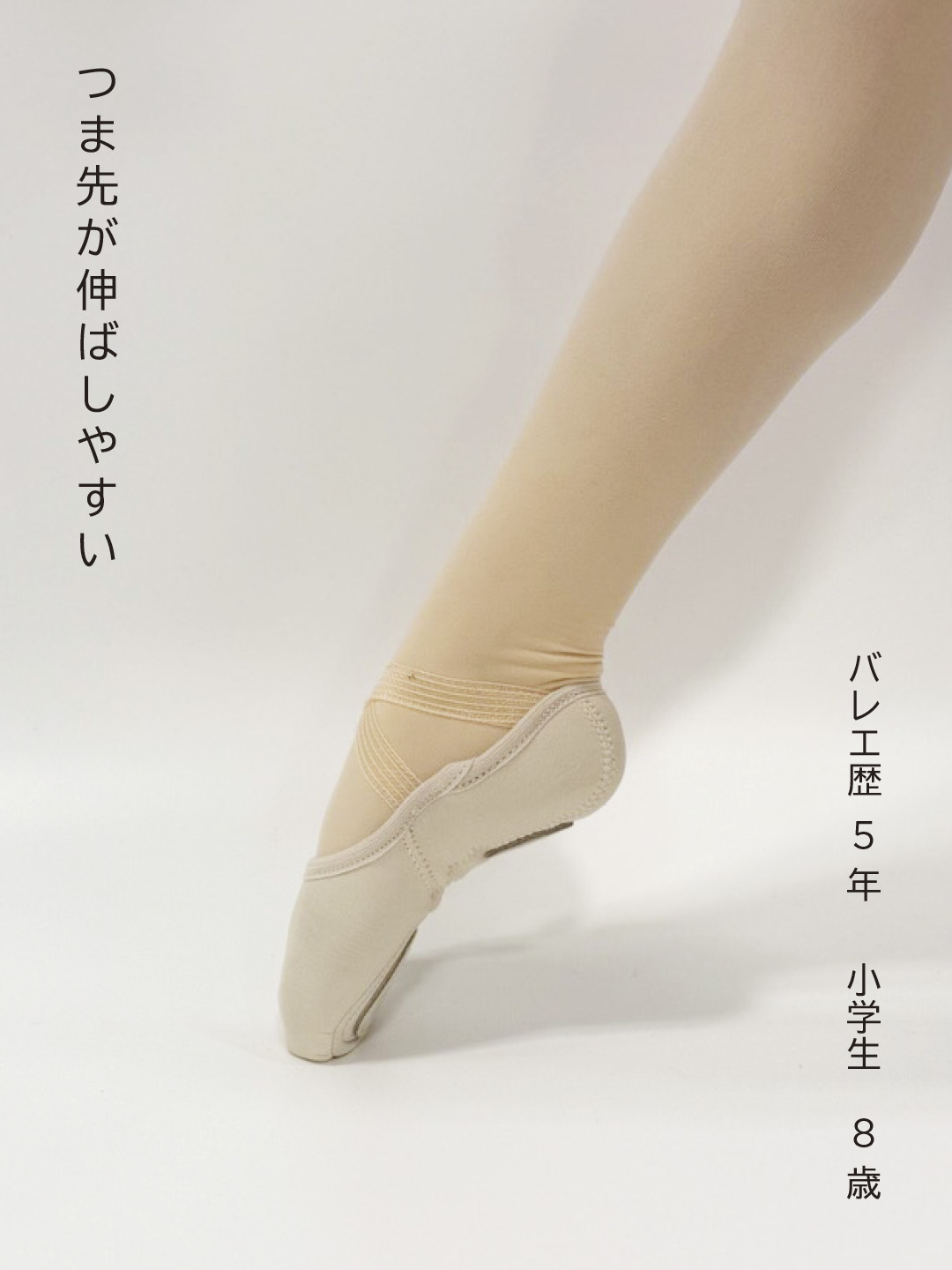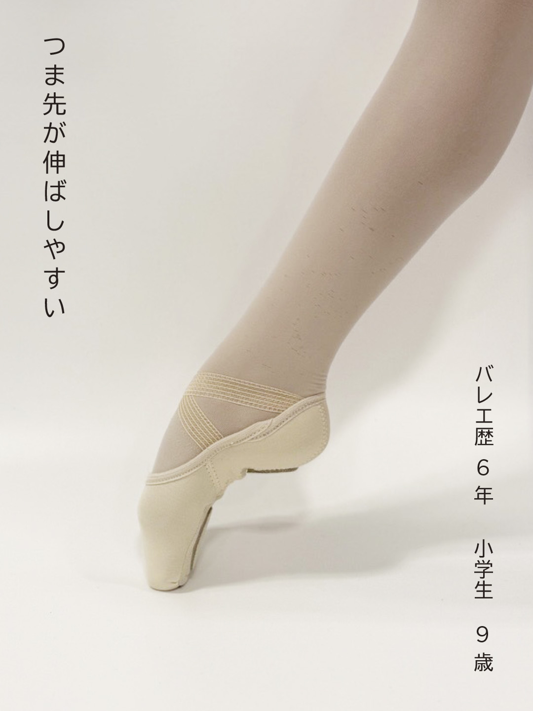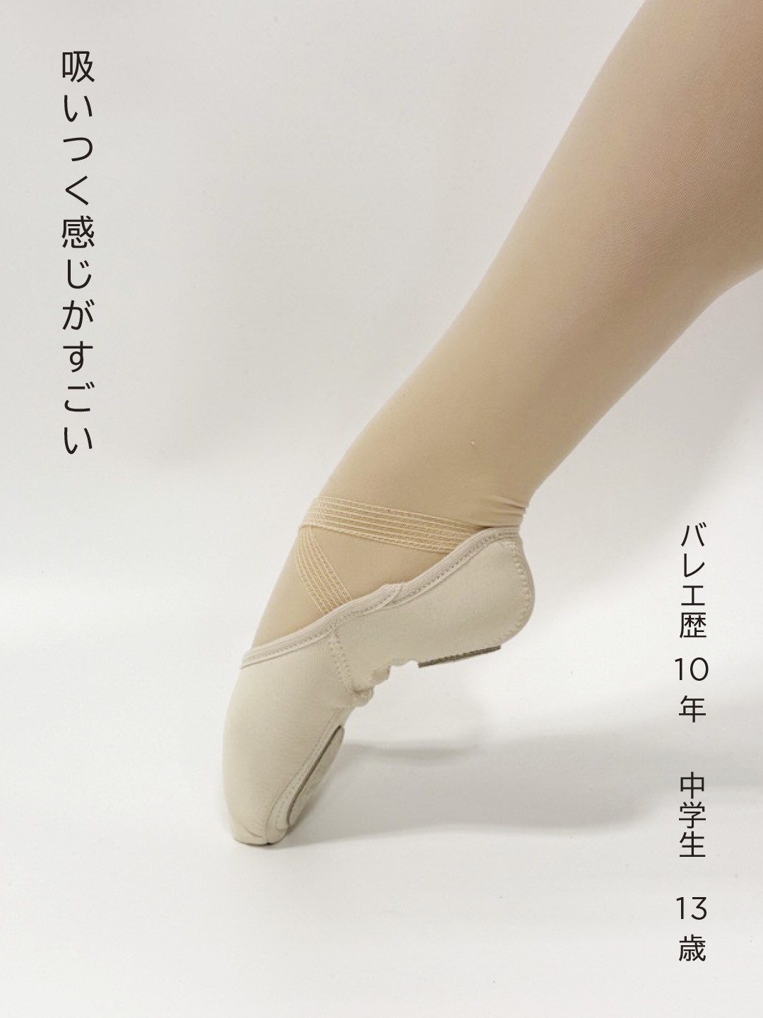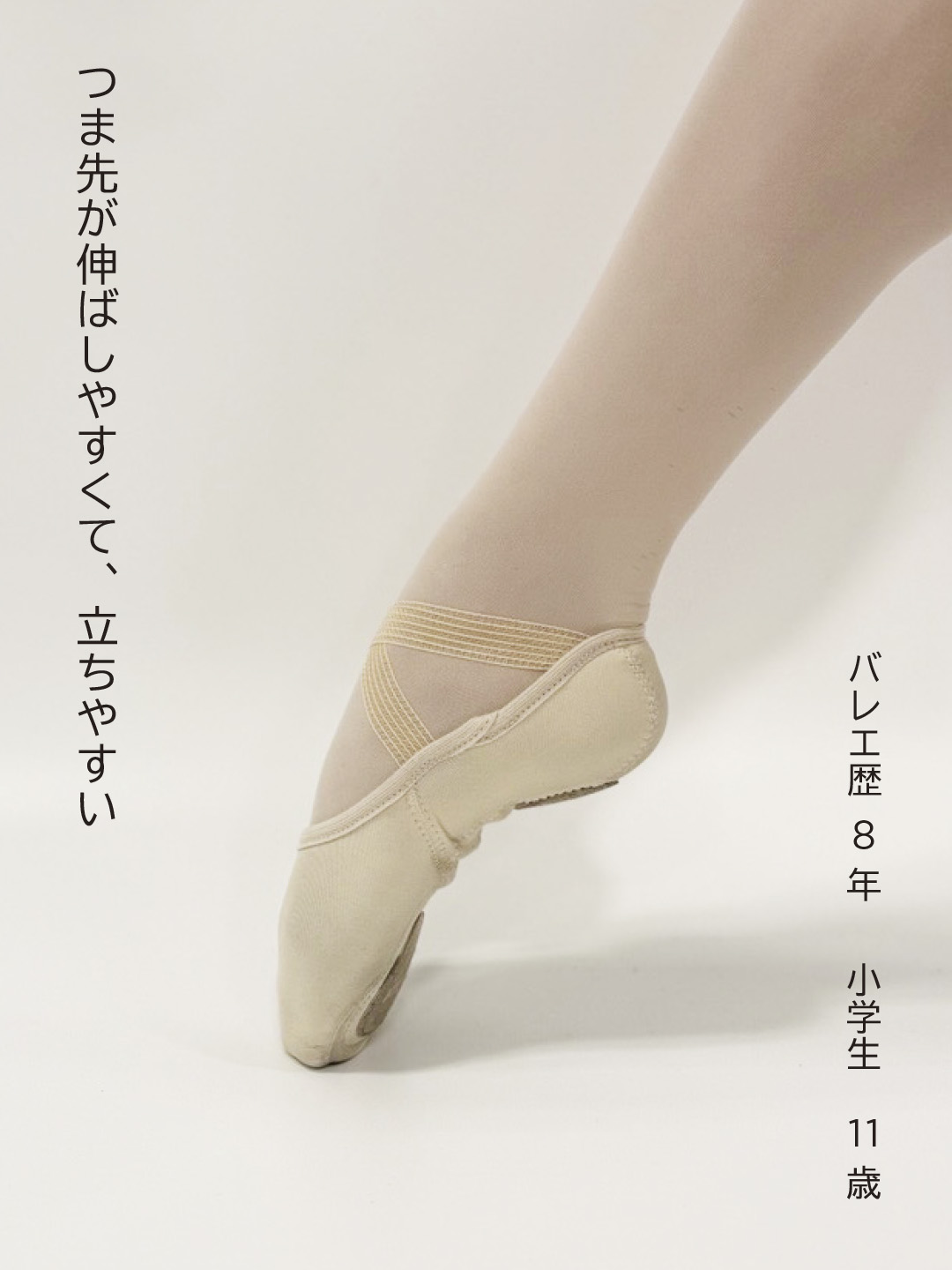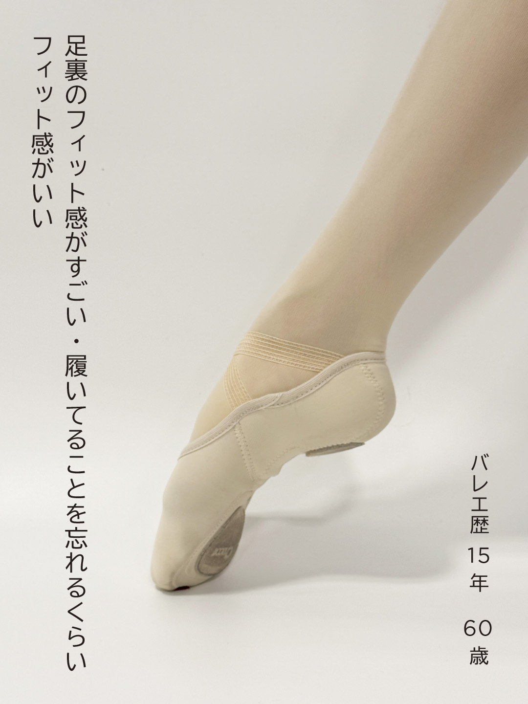 「ストレッチが効いていてもズレないバレエシューズ」を